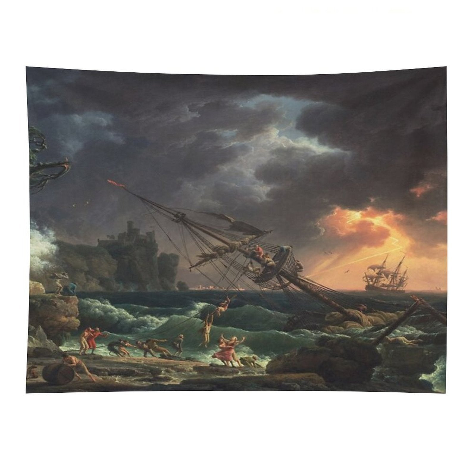 💝【Quality Material】"The Shipwreck Claude-Joseph Vernet 1772 Ocean Storm Marine Ship Art Tapestry" made of 100% polyester, bright colors, durable, lightweight, skin-friendly, soft texture, easy to hang or pack.