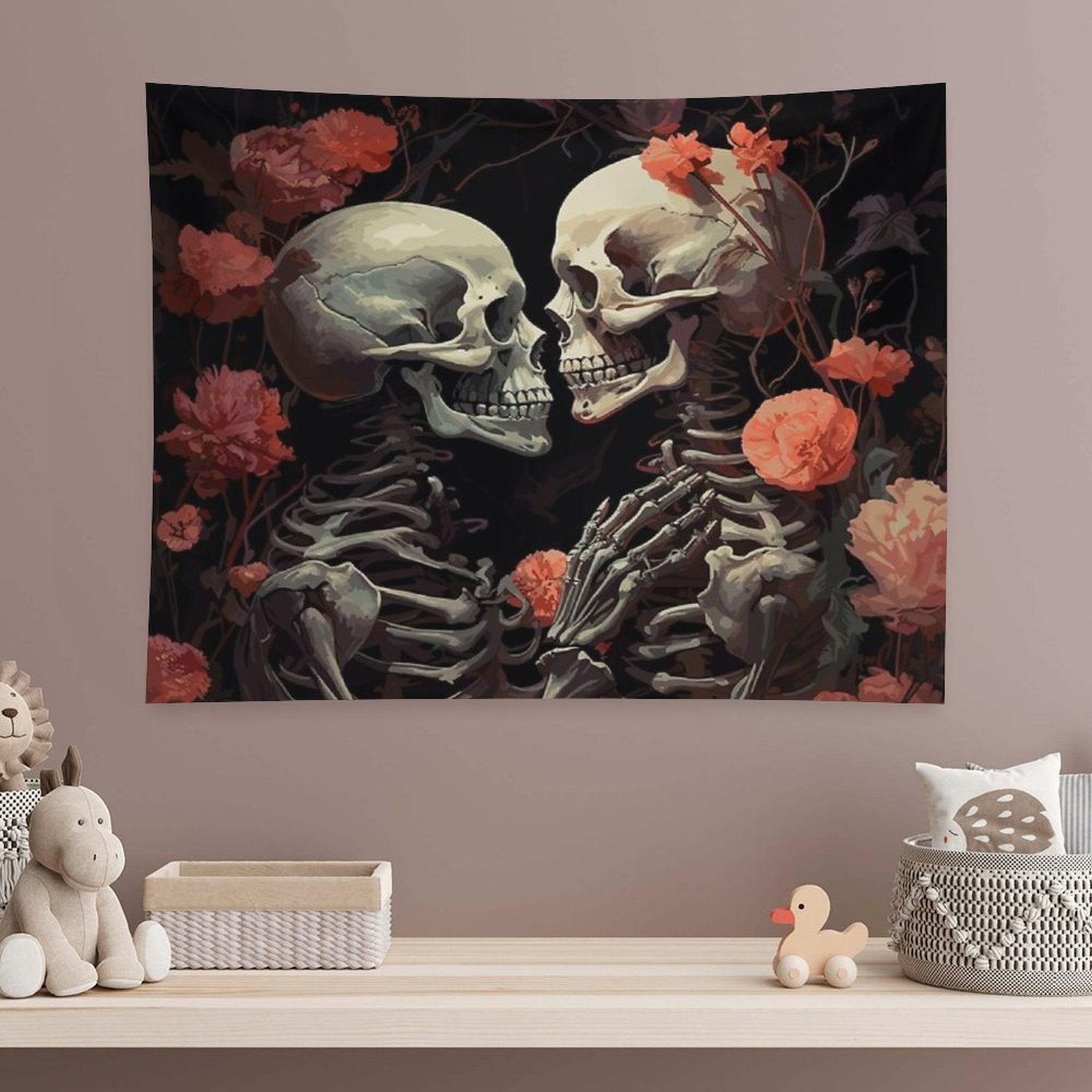 BionZax's Together Skeleton Lover Art Tapestry for Bedroom, College Dorm. Together Skeleton Lover Art Tapestry to decorate your bedroom, college dorm, living room, or kitchen wall, it is the best gift for funny, meme, aesthetic, trendy, simple, fashion, music, abstract, fantasy, modern tapestry for girls, men, boys, teen, women, kids.