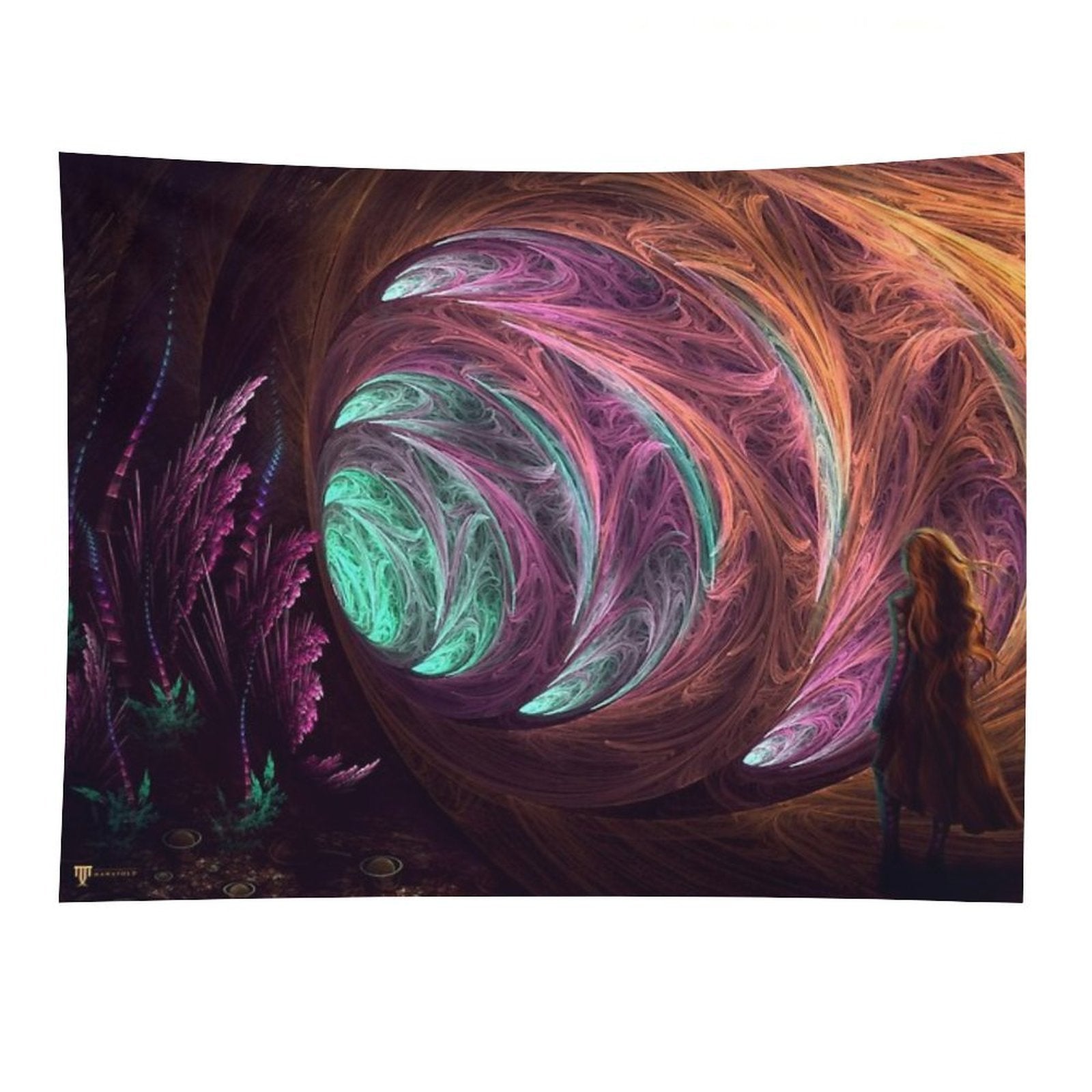 BionZax's Toward The Light - Alice in Wonderland - Manafold Art Tapestry for Bedroom, College Dorm. Toward The Light - Alice in Wonderland - Manafold Art Tapestry to decorate your bedroom, college dorm, living room, or kitchen wall, it is the best gift for funny, meme, aesthetic, trendy, simple, fashion, music, abstract, fantasy, modern tapestry for girls, men, boys, teen, women, kids.