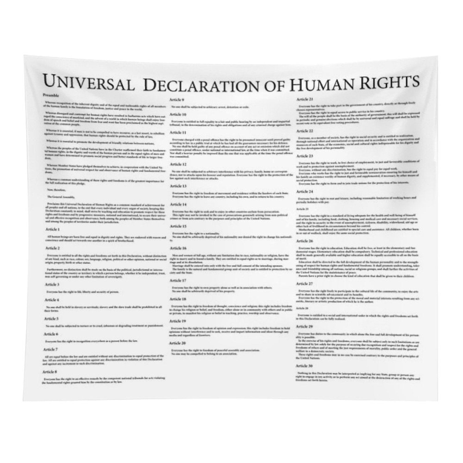 BionZax's Universal Declaration of Human Rights Tapestry for Bedroom, College Dorm. Universal Declaration of Human Rights Tapestry to decorate your bedroom, college dorm, living room, or kitchen wall, it is the best gift for funny, meme, aesthetic, trendy, simple, fashion, music, abstract, fantasy, modern tapestry for girls, men, boys, teen, women, kids.