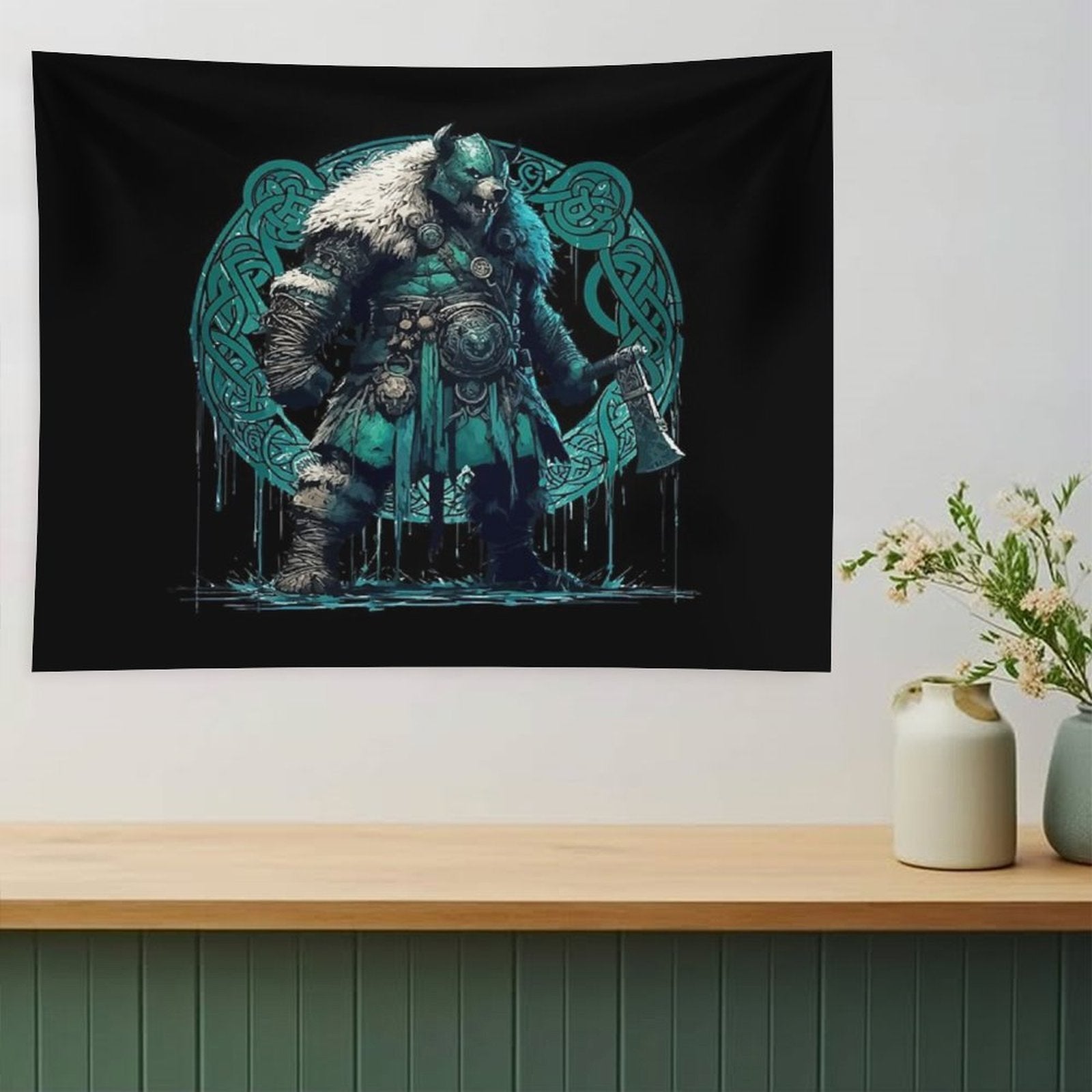 BionZax's Viking Warrior Bear Knotwork Tapestry for Bedroom, College Dorm. Viking Warrior Bear Knotwork Tapestry to decorate your bedroom, college dorm, living room, or kitchen wall, it is the best gift for funny, meme, aesthetic, trendy, simple, fashion, music, abstract, fantasy, modern tapestry for girls, men, boys, teen, women, kids.