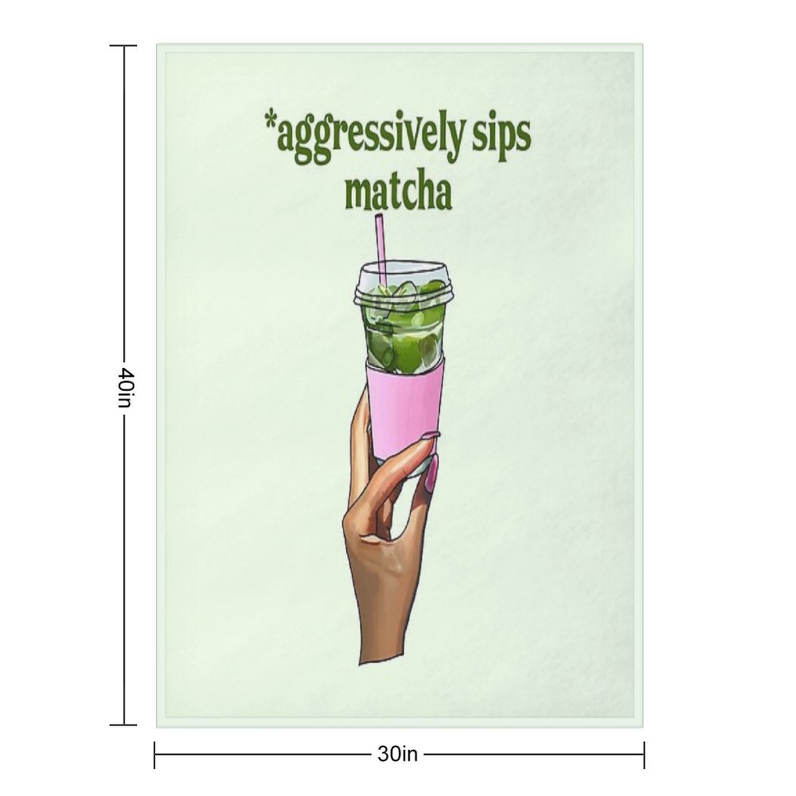 Aggressively Sips Matcha – Funny Matcha Aesthetic Sticker Blanket Size Chart: