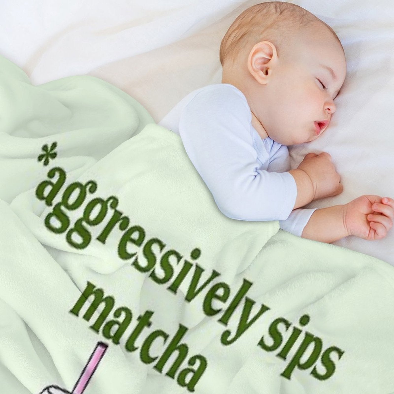 Aggressively Sips Matcha – Funny Matcha Aesthetic Sticker Wrinkle-free Throw Blanket