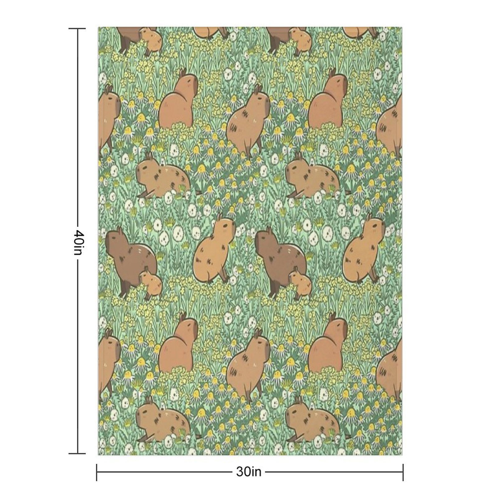 Capybaras Meadow in Green And Yellow Blanket Size Chart: