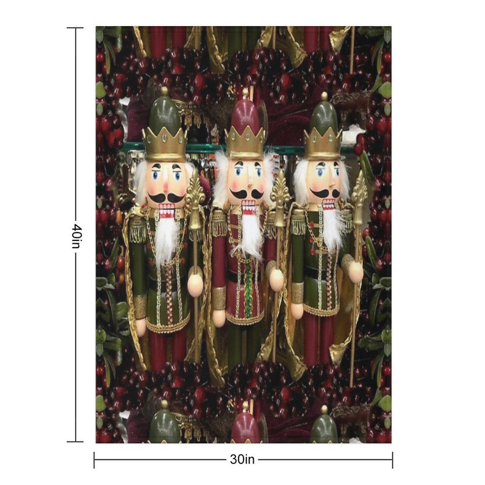 Christmas Nutcracker Trio Blanket Size Chart: