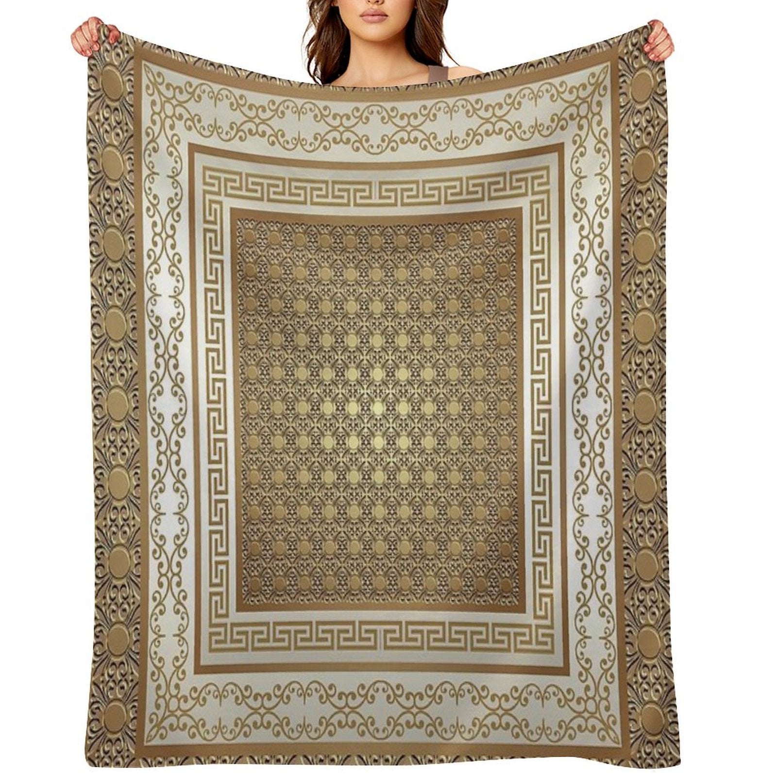 Greek Keys Cream Copper Pattern Machine-washable Throw Blanket