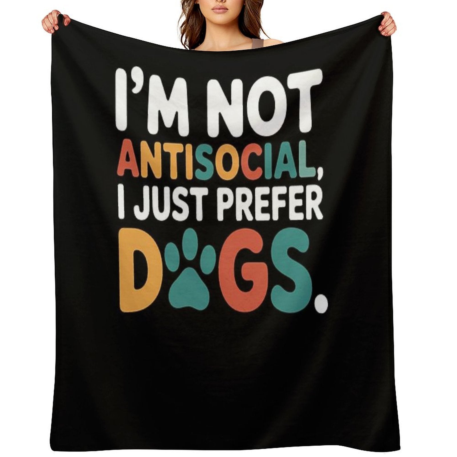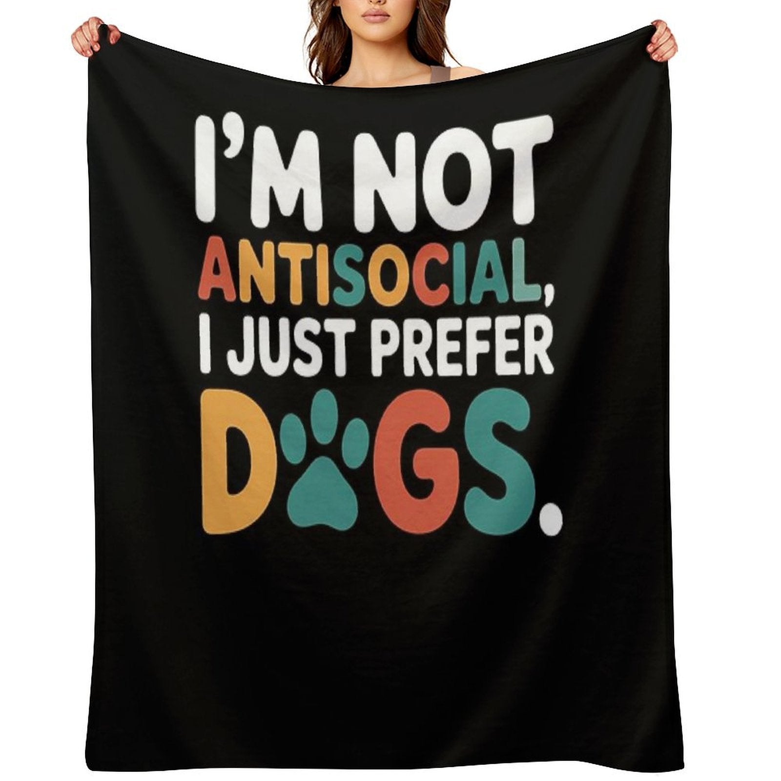 I’m Not Antisocial I Just Prefer Dogs Funny Dog Lover Lightweight Throw Blanket