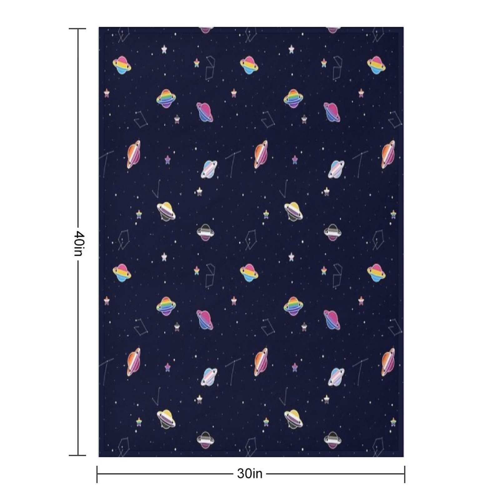 LGBTQ Pride Planets & Stars in Space Pattern Blanket Size Chart: