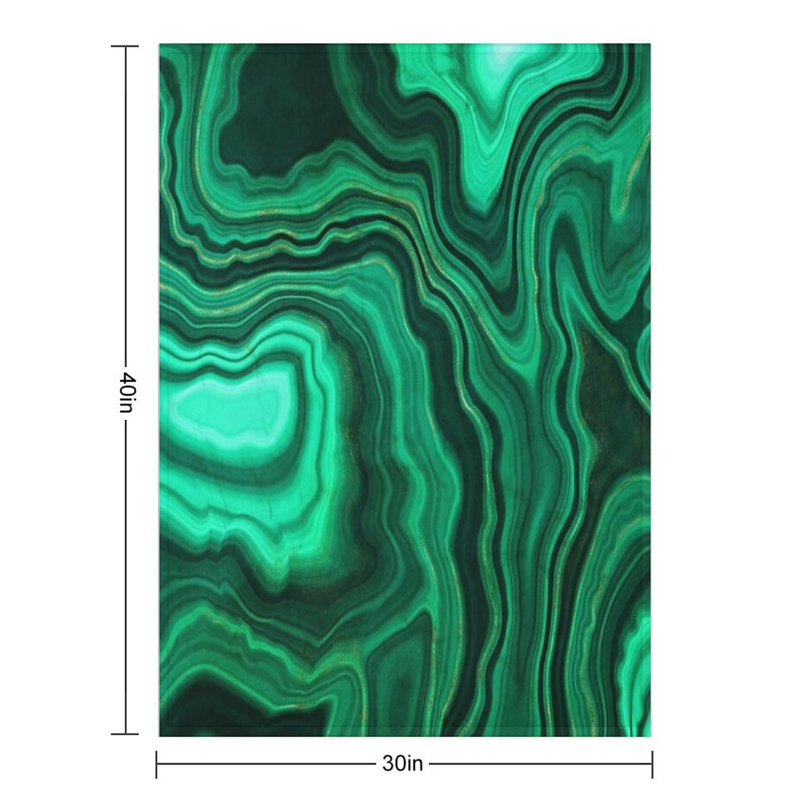 Malachite Green Faux Marble with Gold Veins III Blanket Size Chart:
