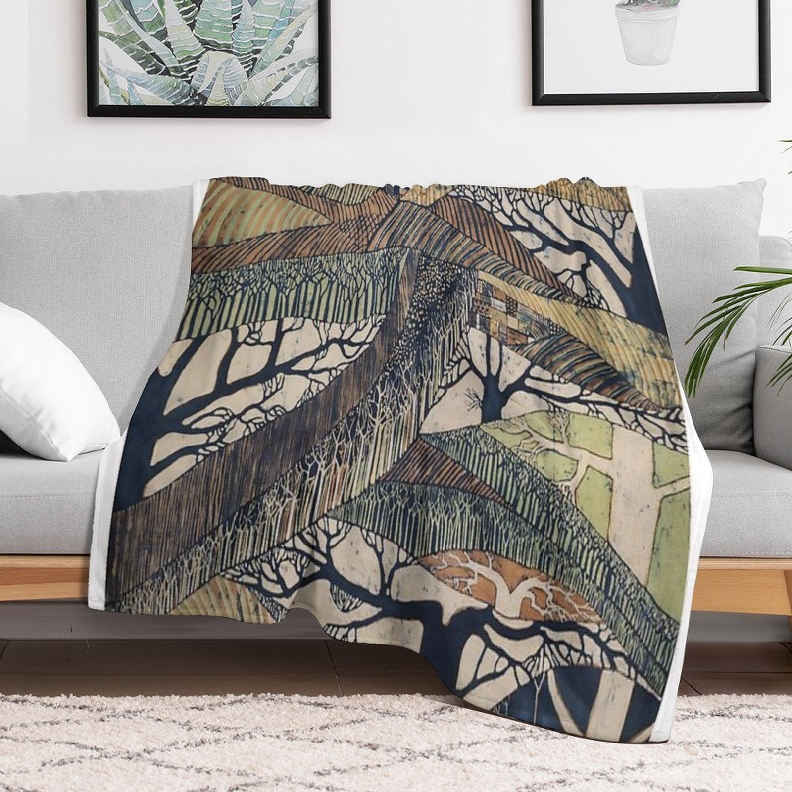 Marching Trees 1970's Batik Travel-friendly Throw Blanket