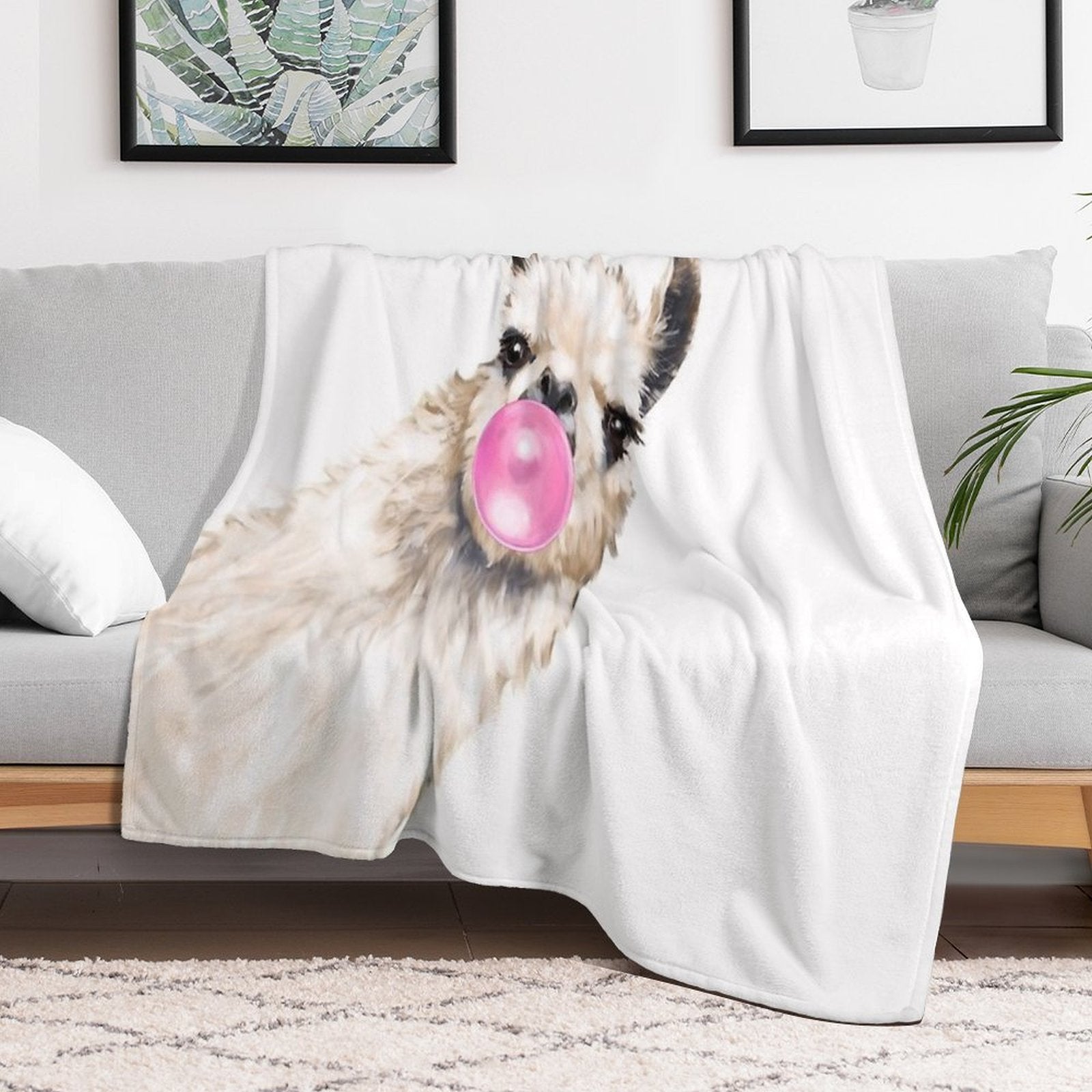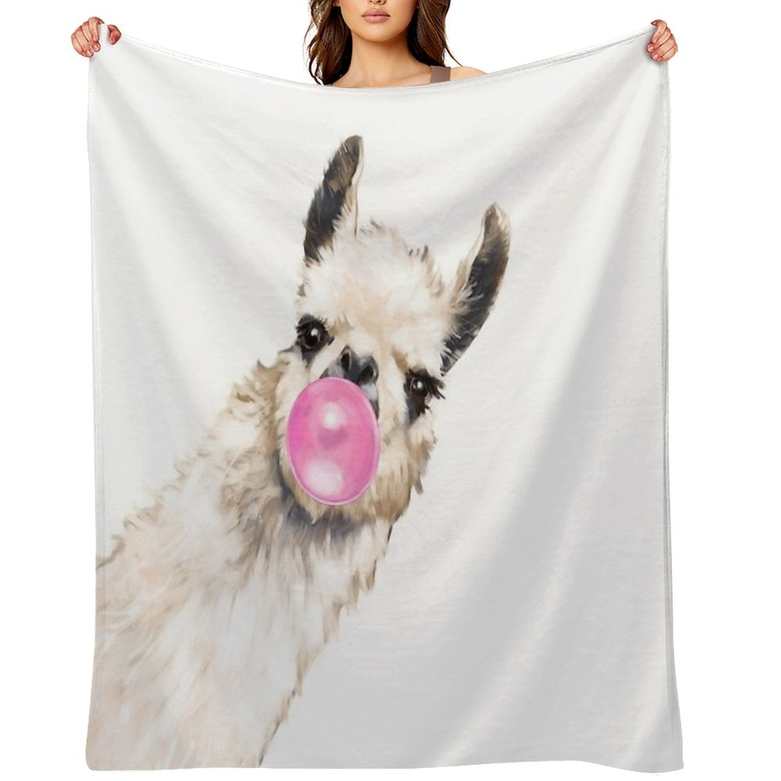Sneaky Llama with Bubble Gum All-season Throw Blanket