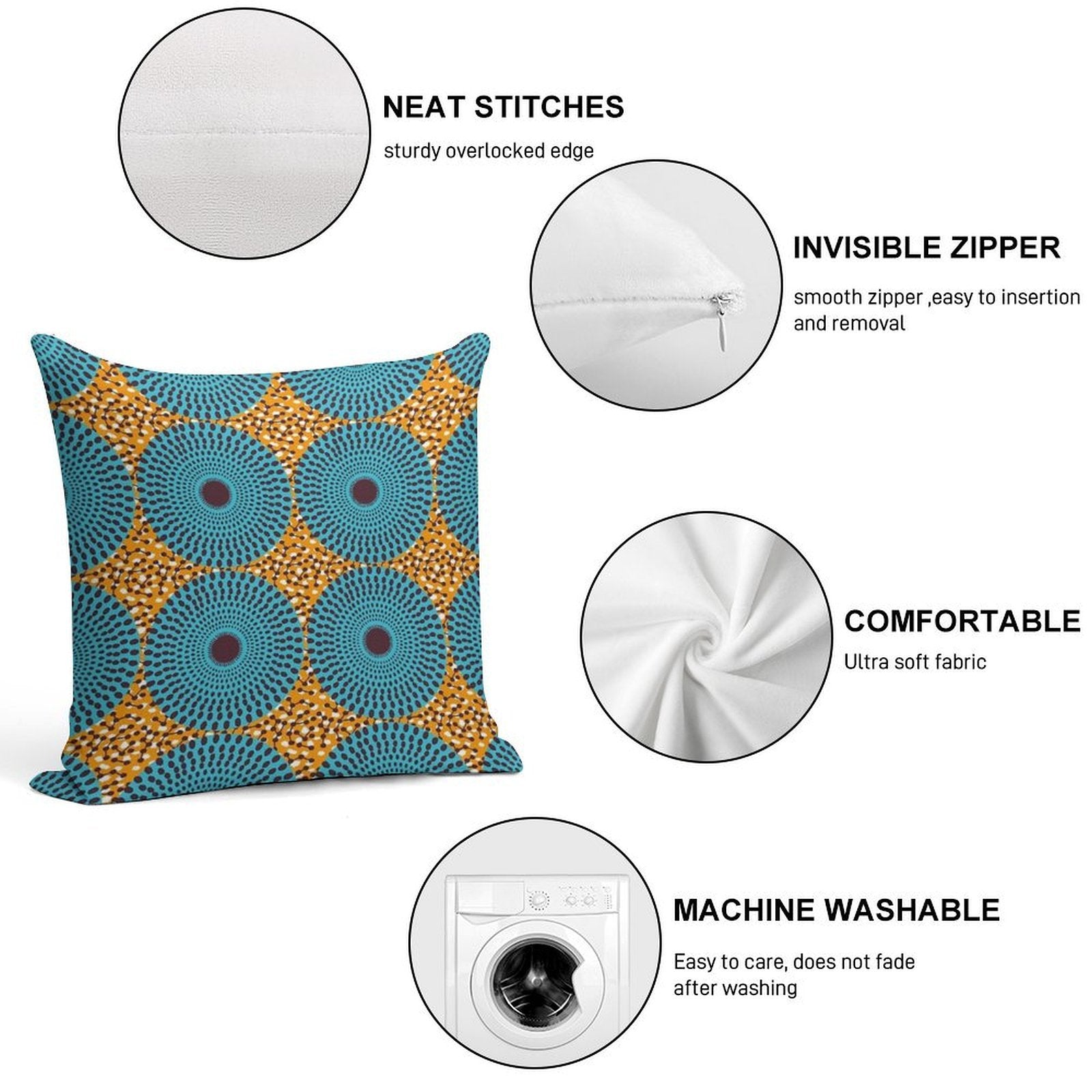 - Reinforced stitching along the edges prevents fraying and extends the life of your African Fabrics - Wax #3 Pillowcase.