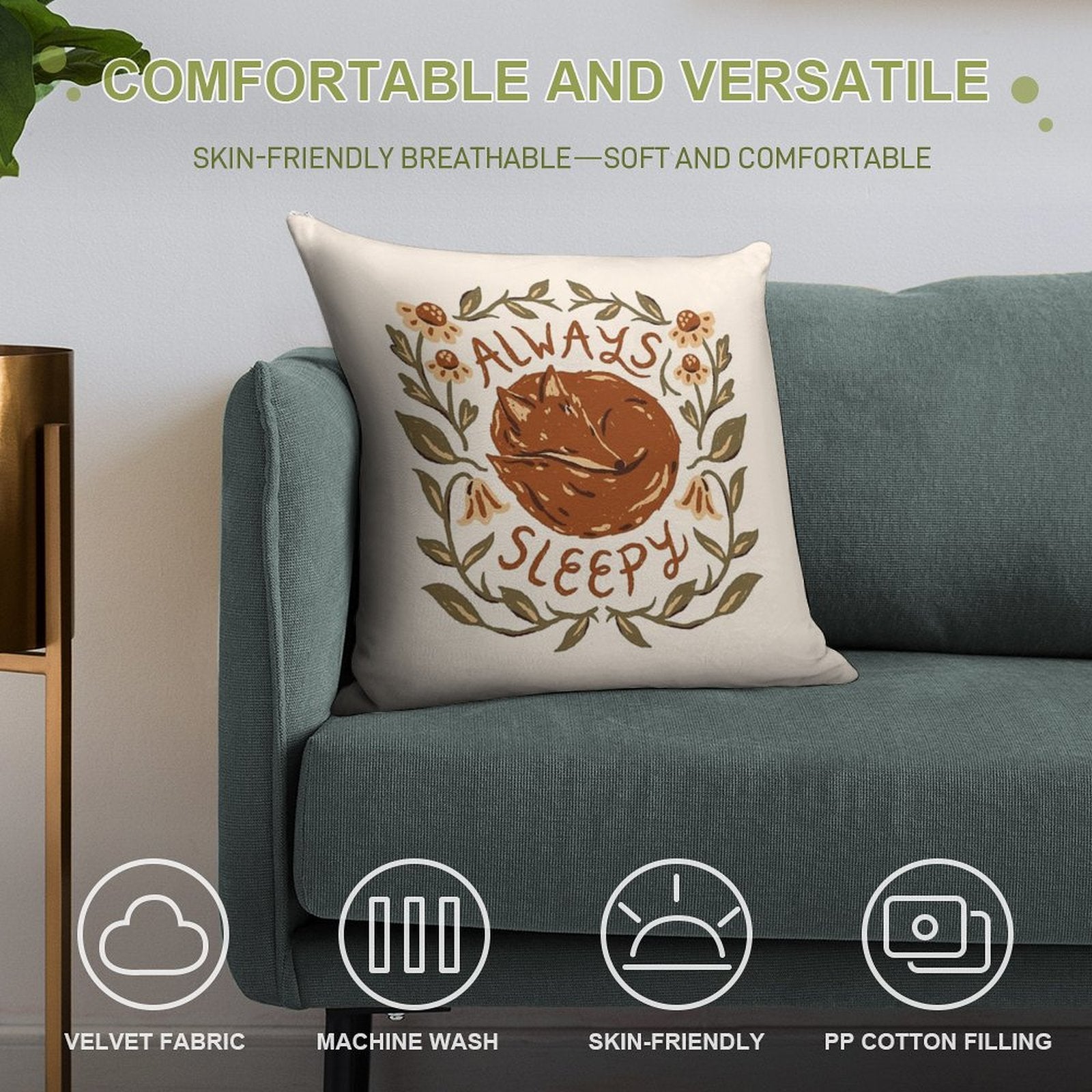 Always Sleepy Fox Soft Hidden Zipper Throw Pillow