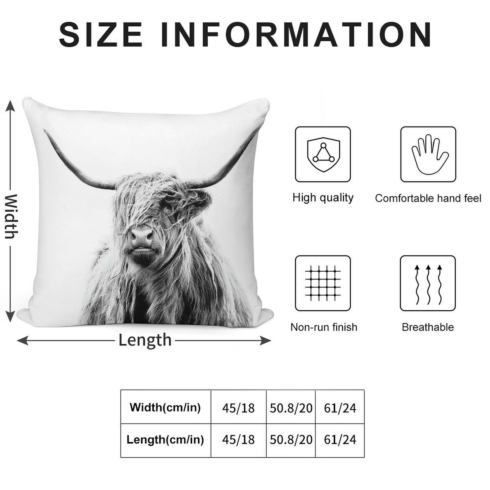 - Reinforced stitching along the edges prevents fraying and extends the life of your B+W Highland Cow Pillowcase.