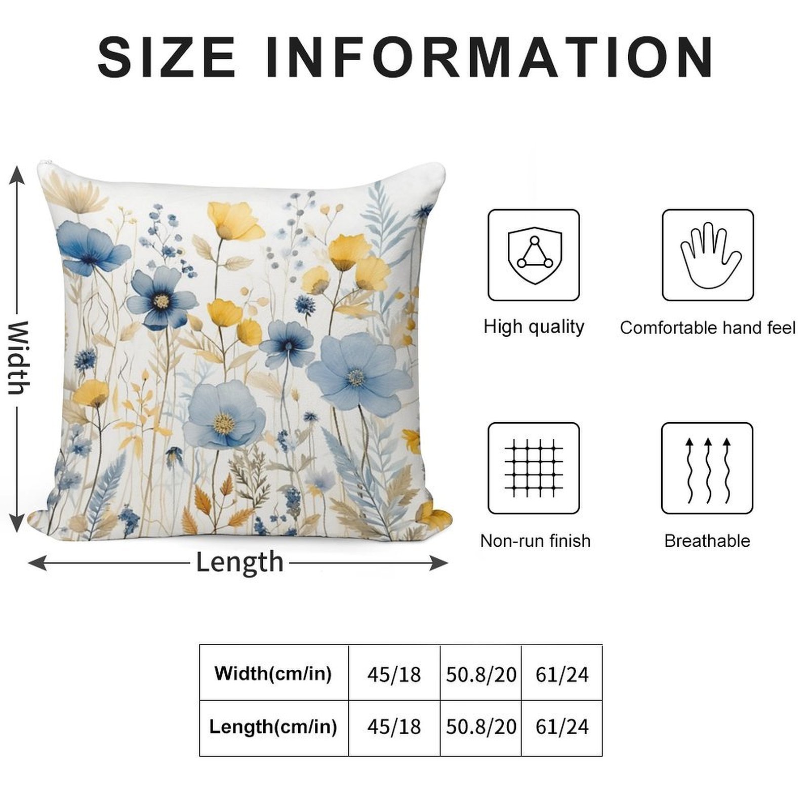 - Reinforced stitching along the edges prevents fraying and extends the life of your Blue And Yellow Wildflowers, Watercolour Boho Flowers Pillowcase.