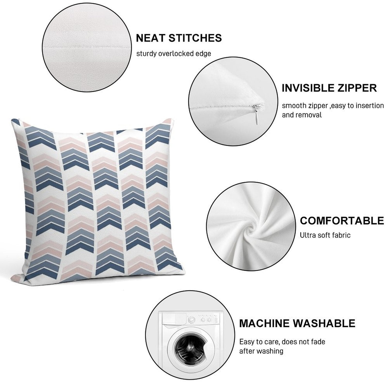 Blush Pink And Navy Blue Scandi Pattern Soft Hidden Zipper Throw Pillow