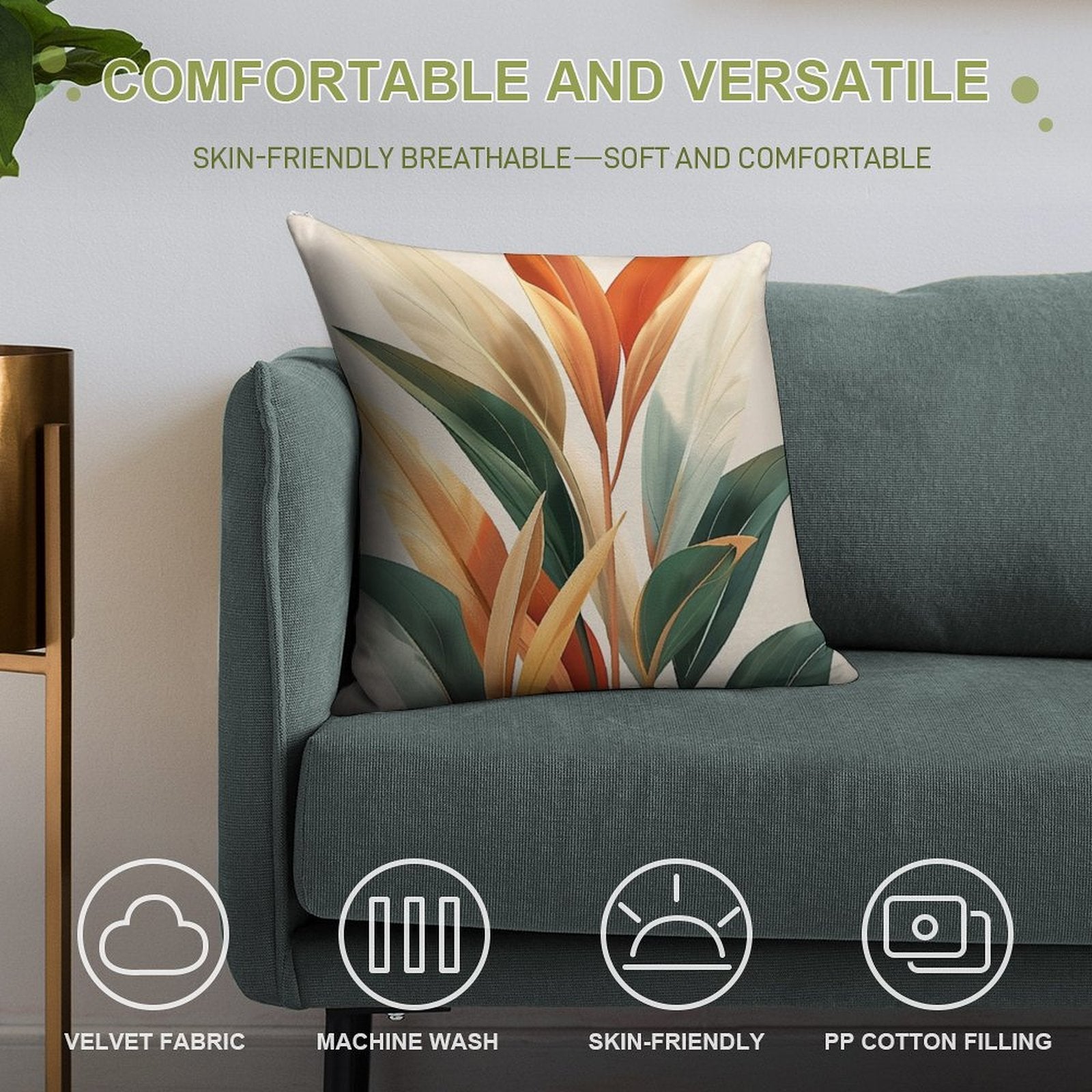 Boho Leaves Wall Art, Orange And Green Soft Multiple Sizes Throw Pillow