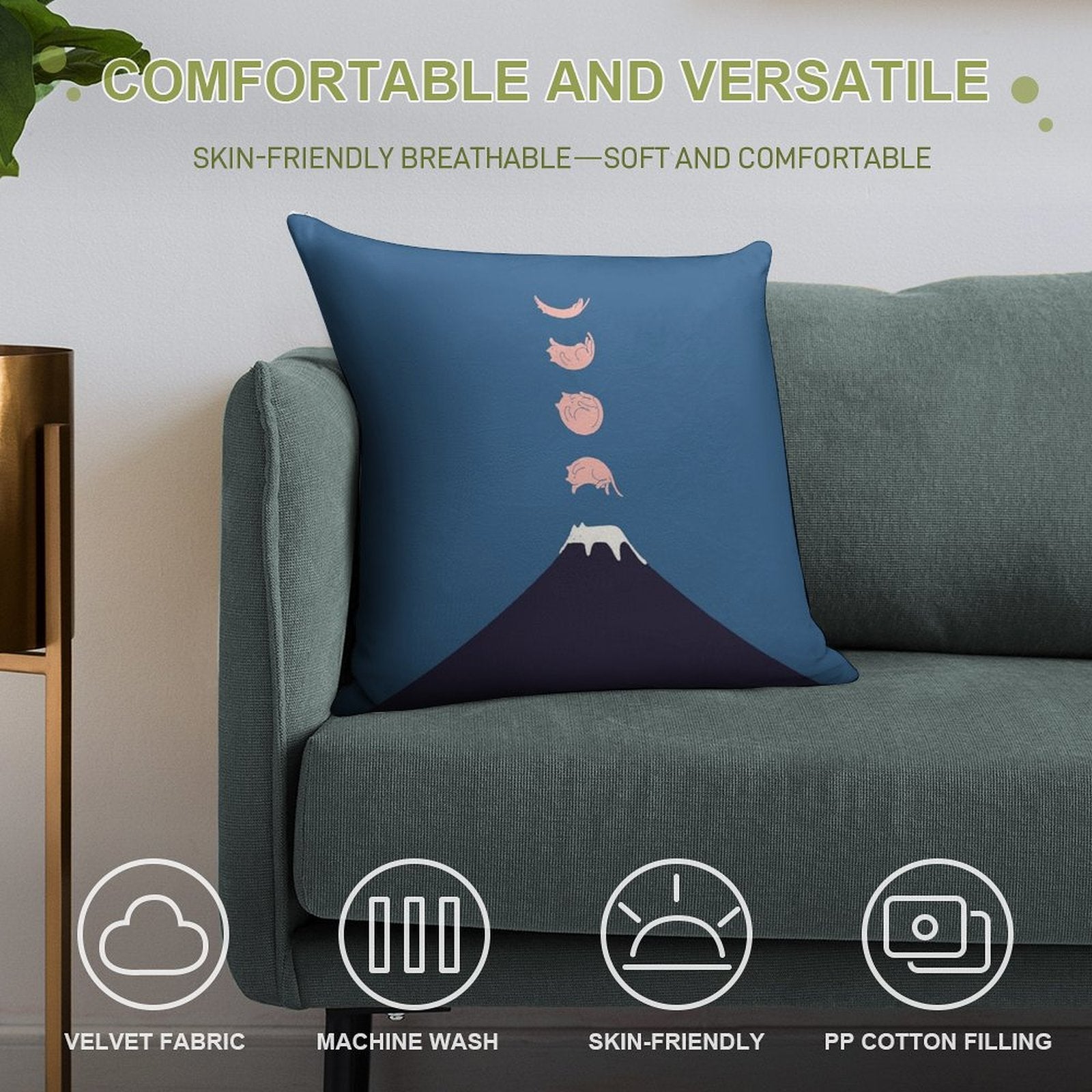 Cat Landscape 73 Soft Short Plush Fabric Throw Pillow