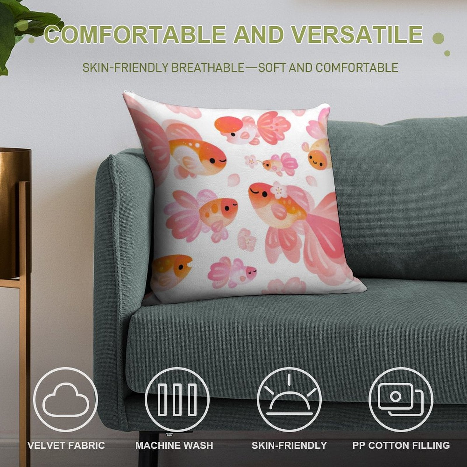 Cherry Blossom Goldfish 2 Soft Gift Ready Throw Pillow