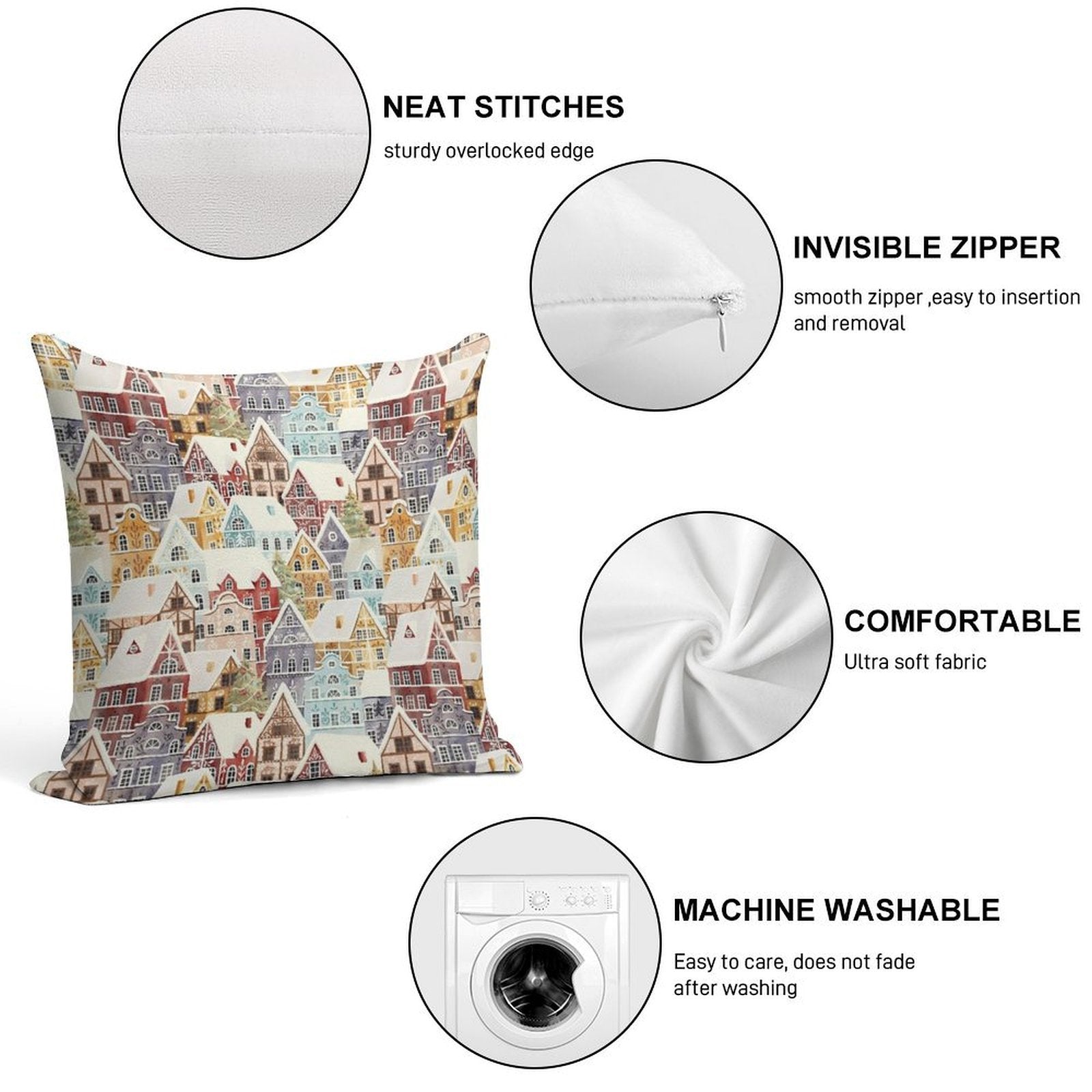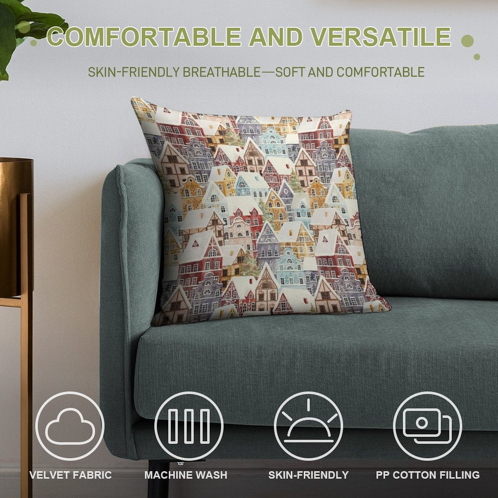 Christmas Happy Town Soft Gift Ready Throw Pillow