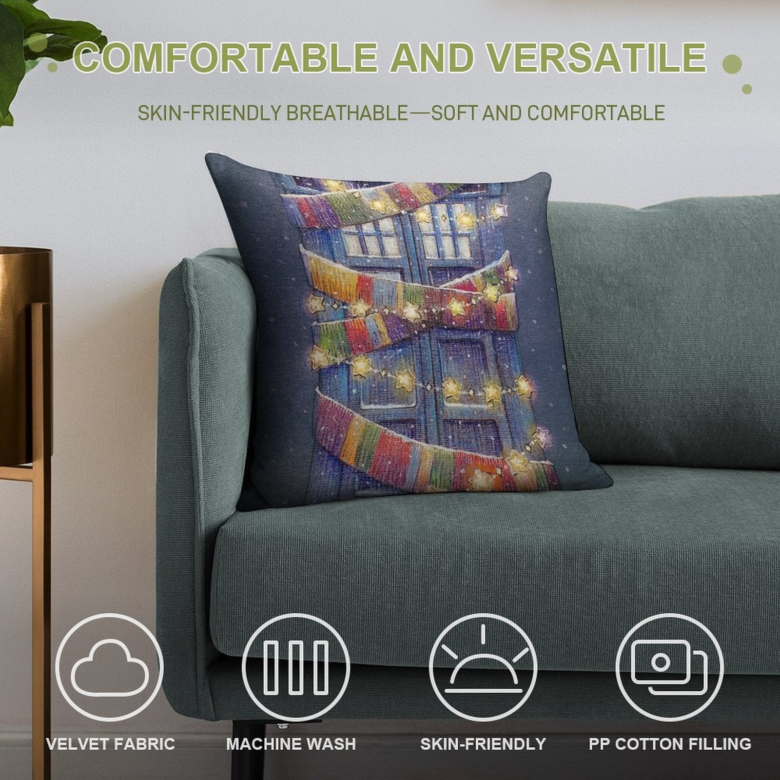 Christmas Police Box Soft Gift Ready Throw Pillow