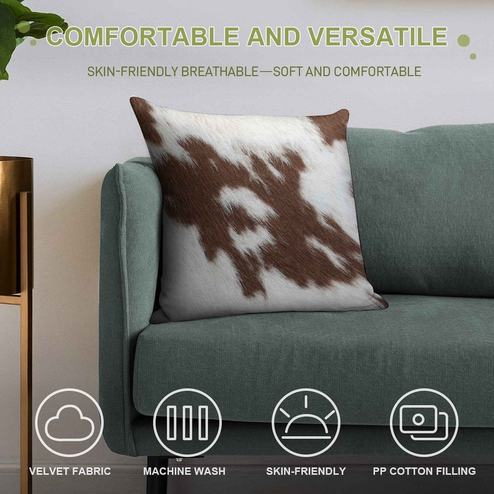 Cow Hide Dark Brown & White Soft Decorative Cover Throw Pillow