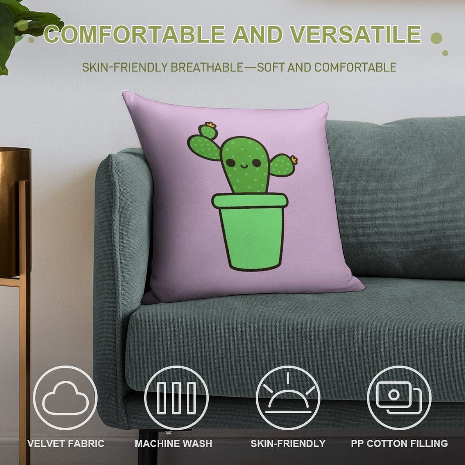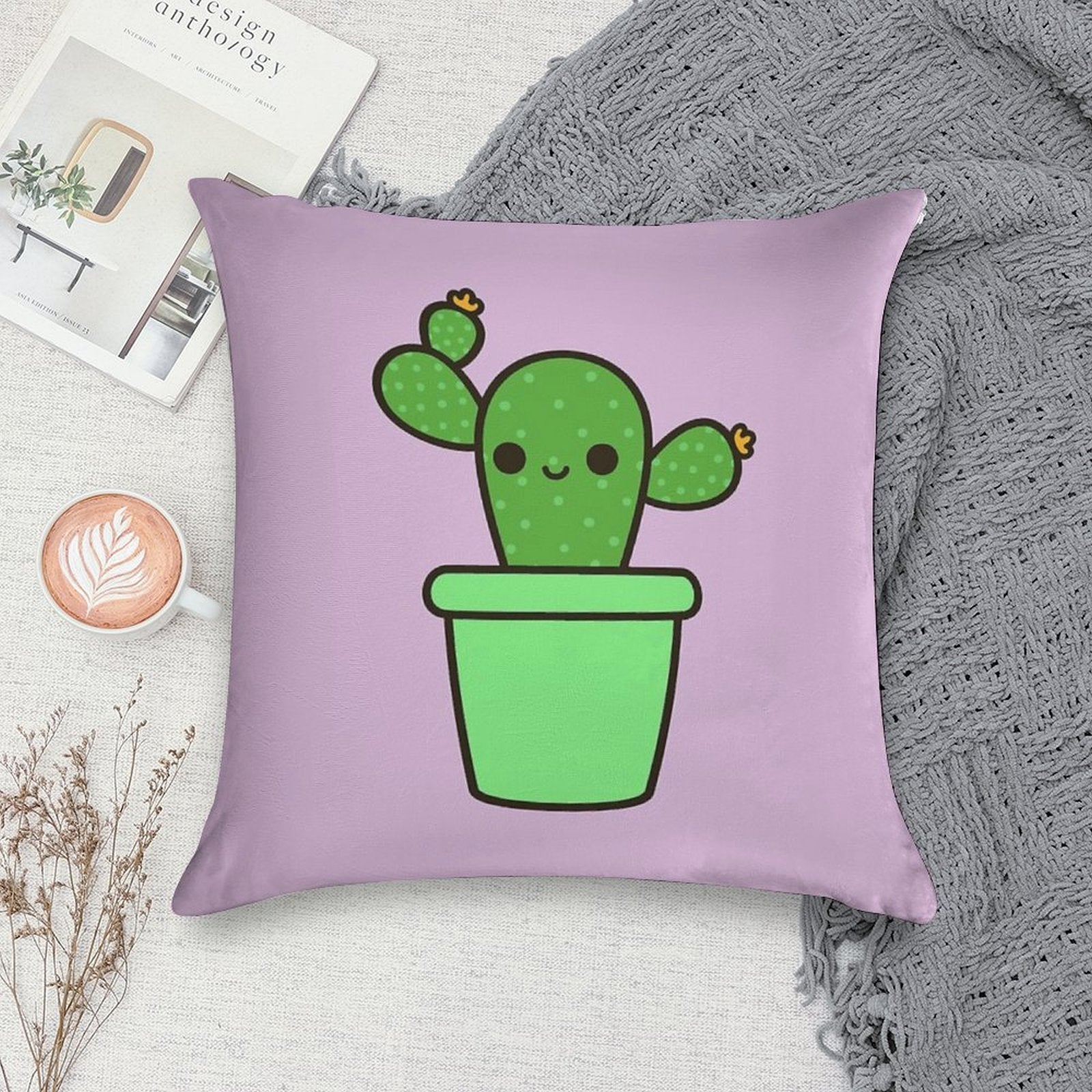 Cute Cactus in Green Pot Soft Shrink-Resistant Throw Pillow