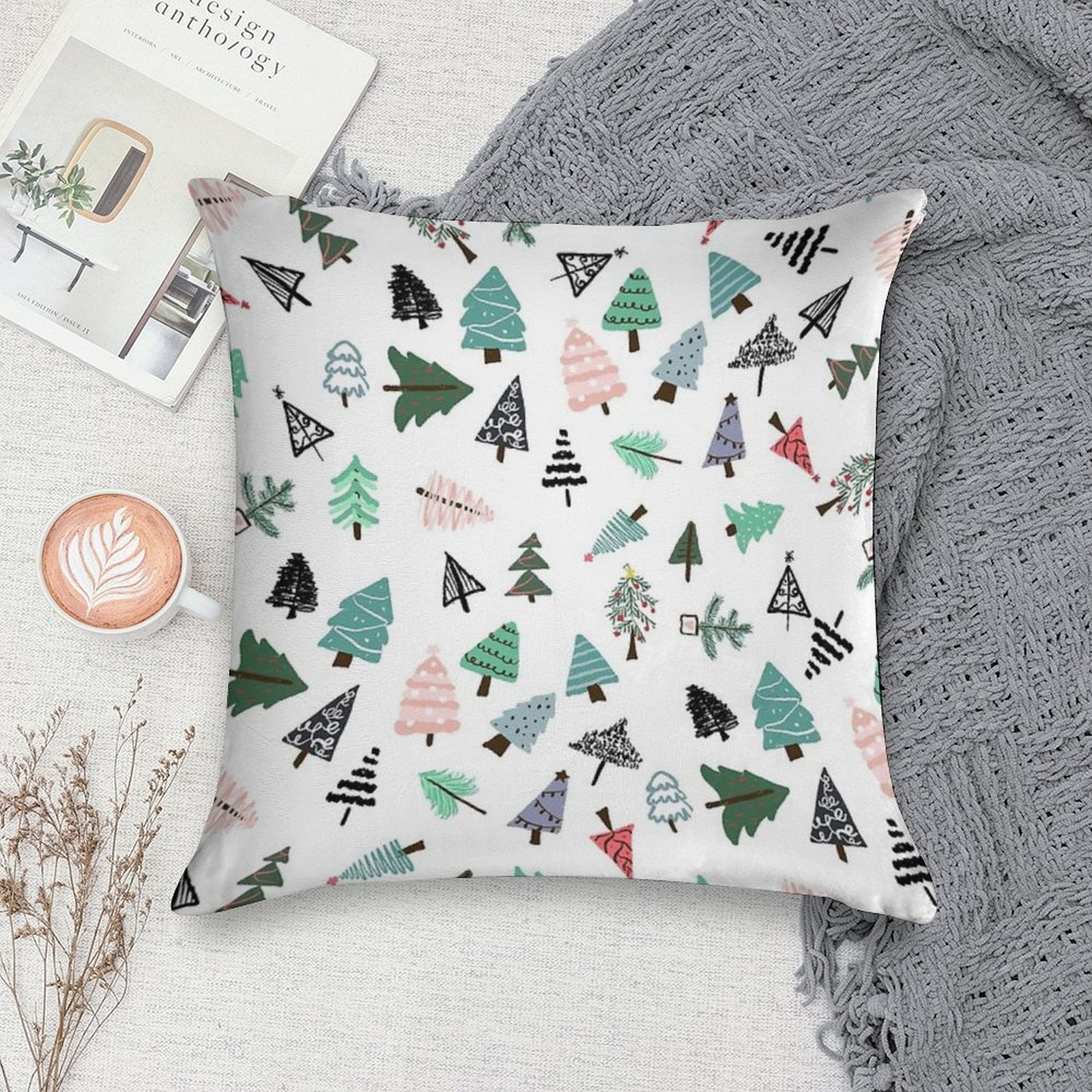 Cute Whimsical Christmas Trees Pattern Illustration Soft Shrink-Resistant Throw Pillow