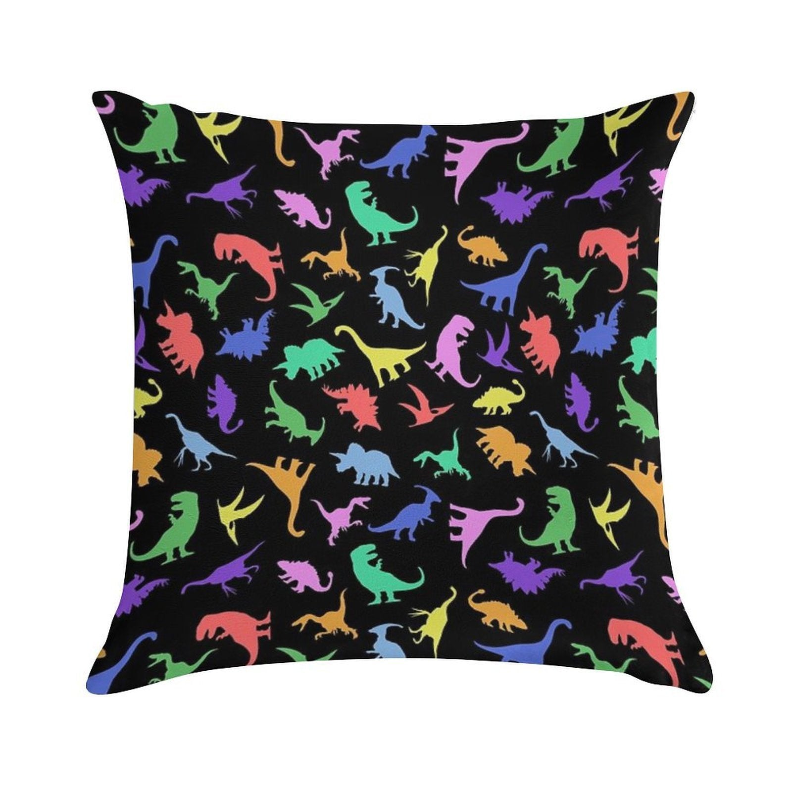 Fun Dinosaur Pattern (Black Background) Soft Home Decor Throw Pillow