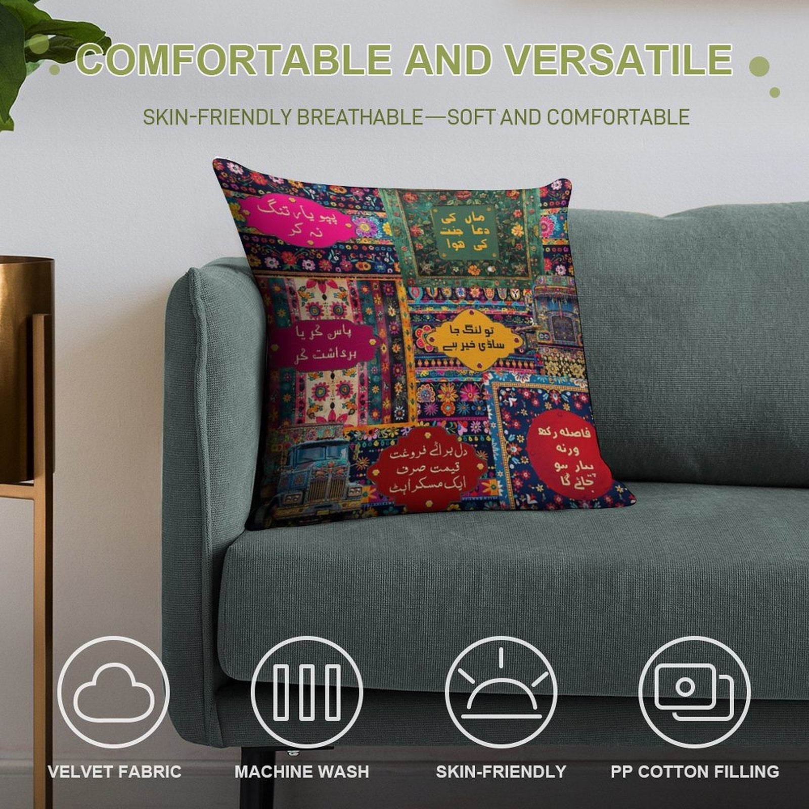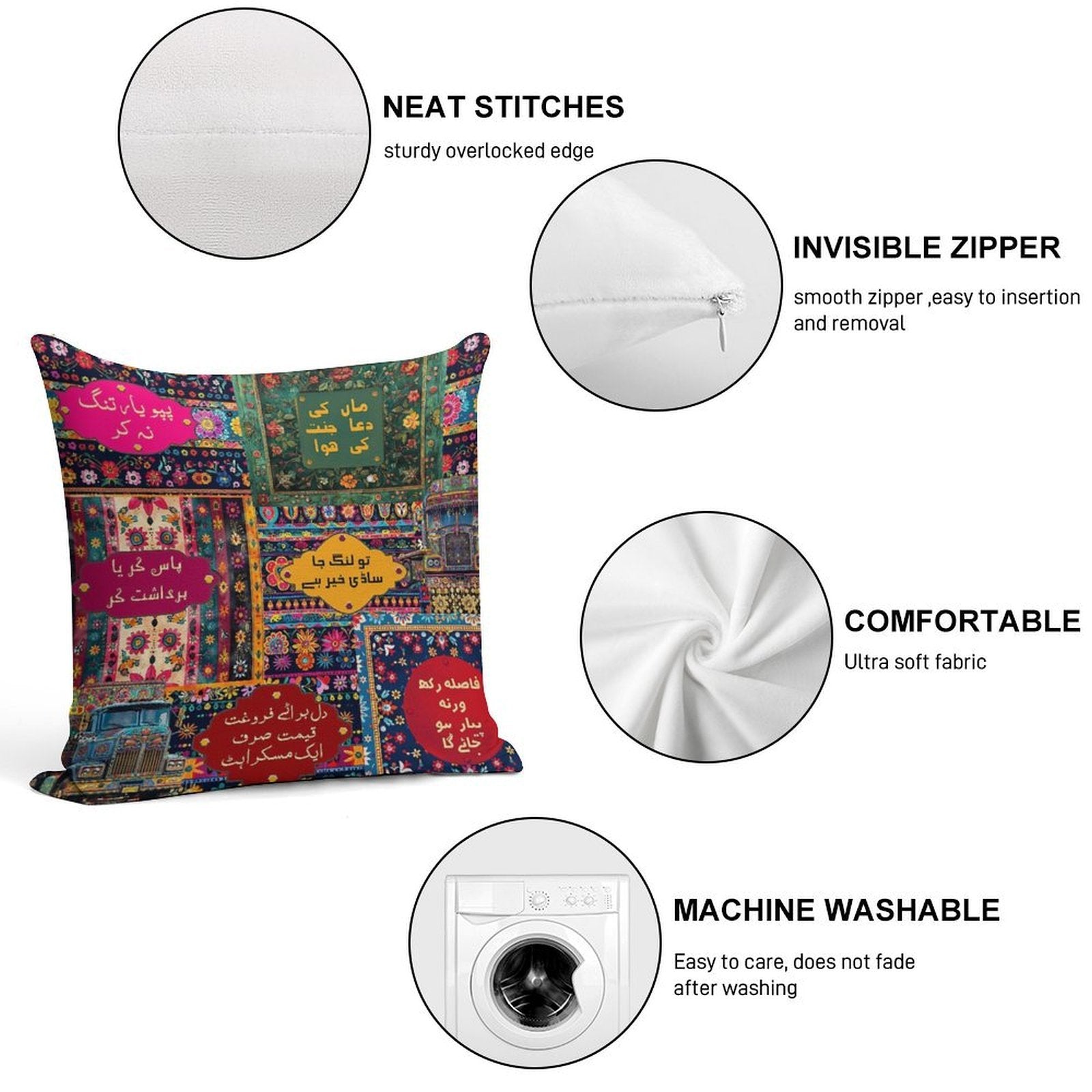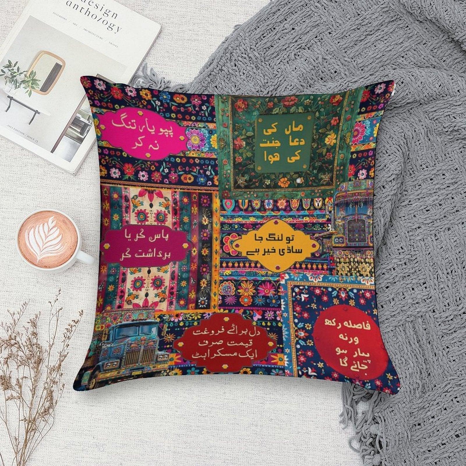 Funny Pakistani Truck Art Poetry Soft Short Plush Fabric Throw Pillow