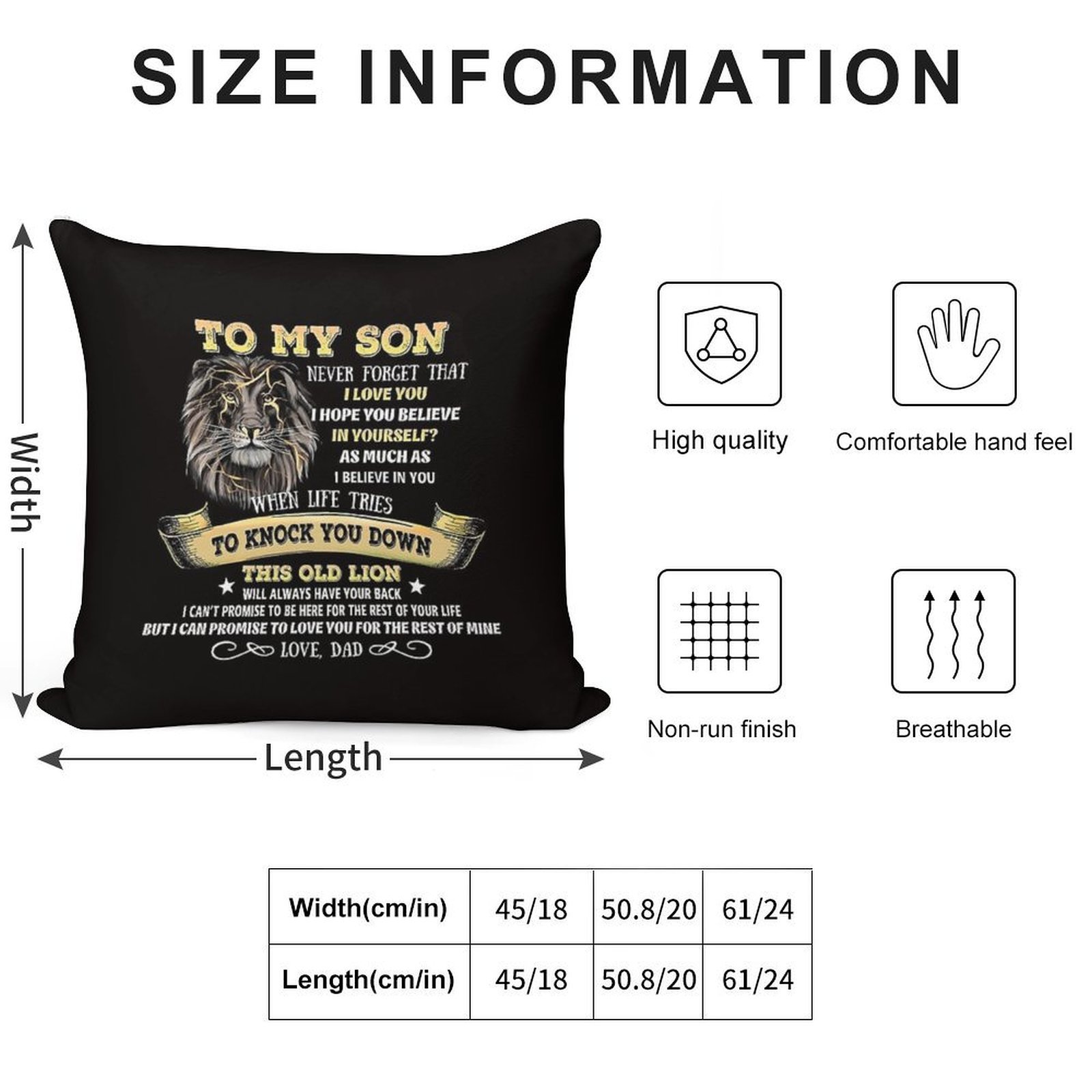- Reinforced stitching along the edges prevents fraying and extends the life of your Gift To My Son From Dad, Lion To My Son From Dad, Never Forget That I Love You Pillowcase.