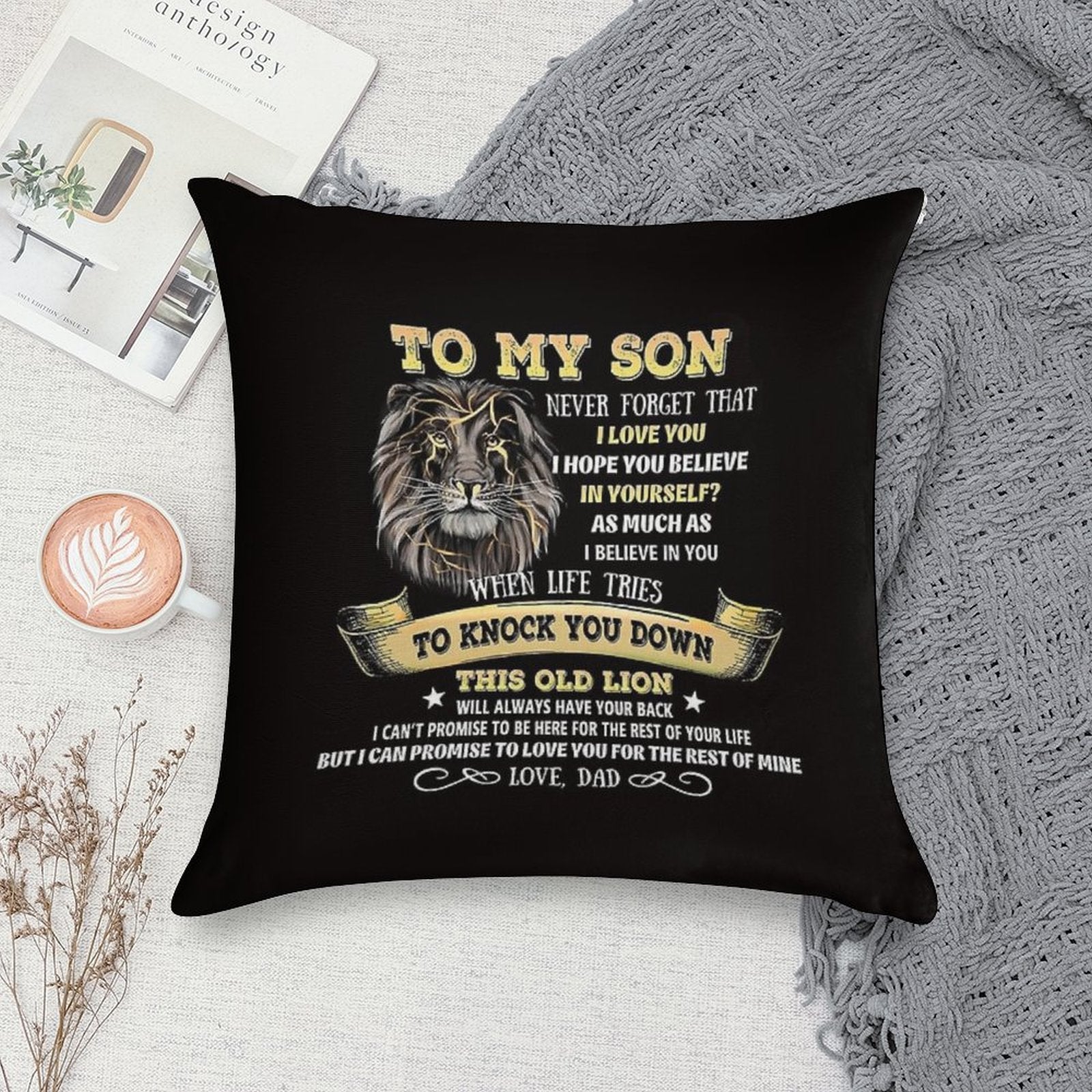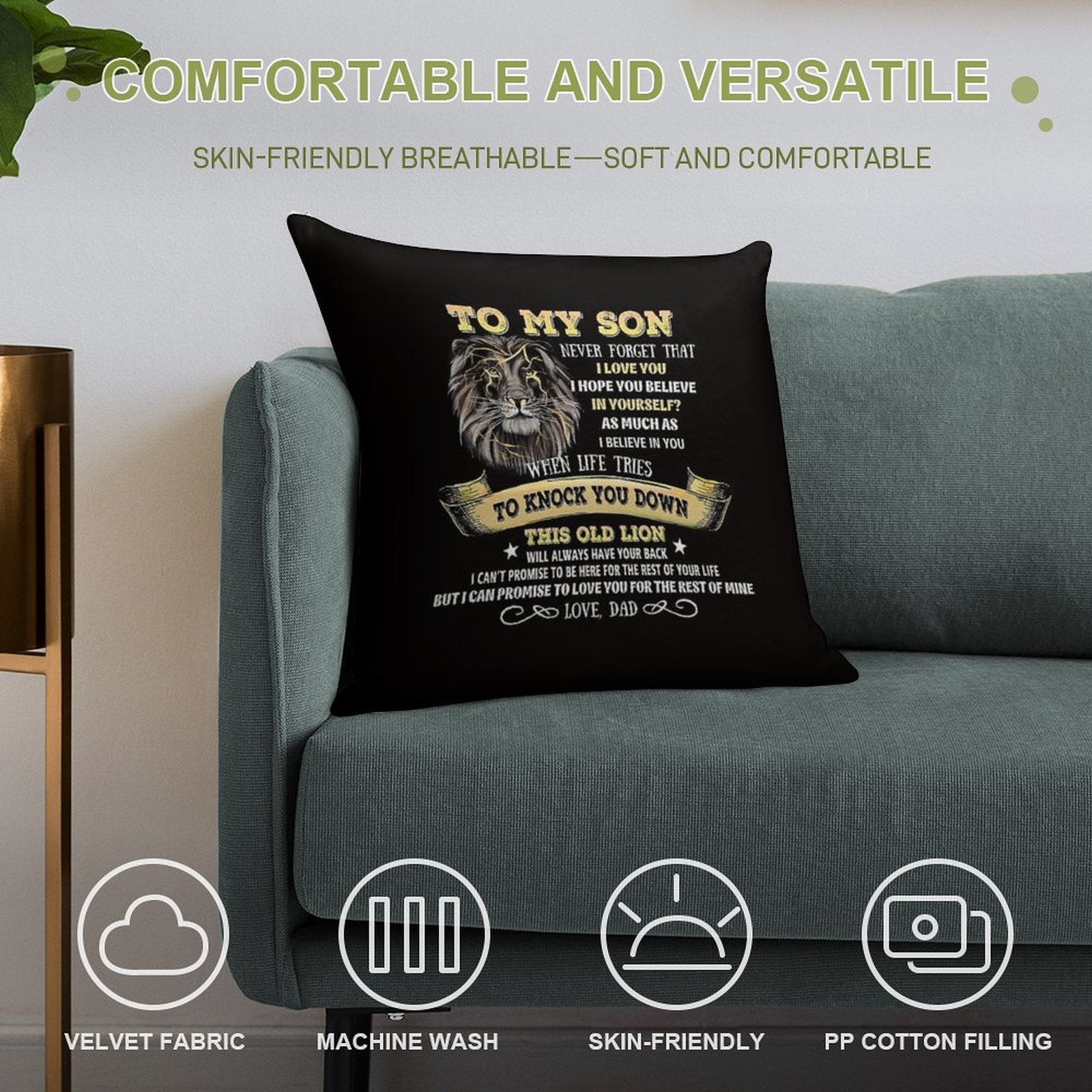 Gift To My Son From Dad, Lion To My Son From Dad, Never Forget That I Love You Soft Short Plush Fabric Throw Pillow