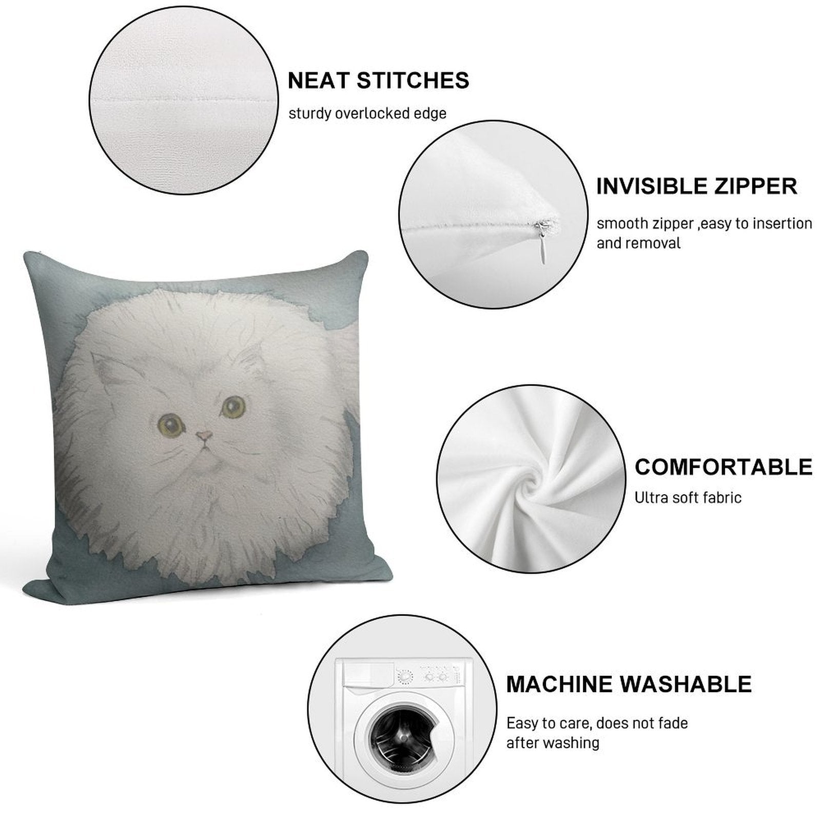 Why Choose the Golden-Eyed Fluffy White Cat – Watercolour Pillowcase?