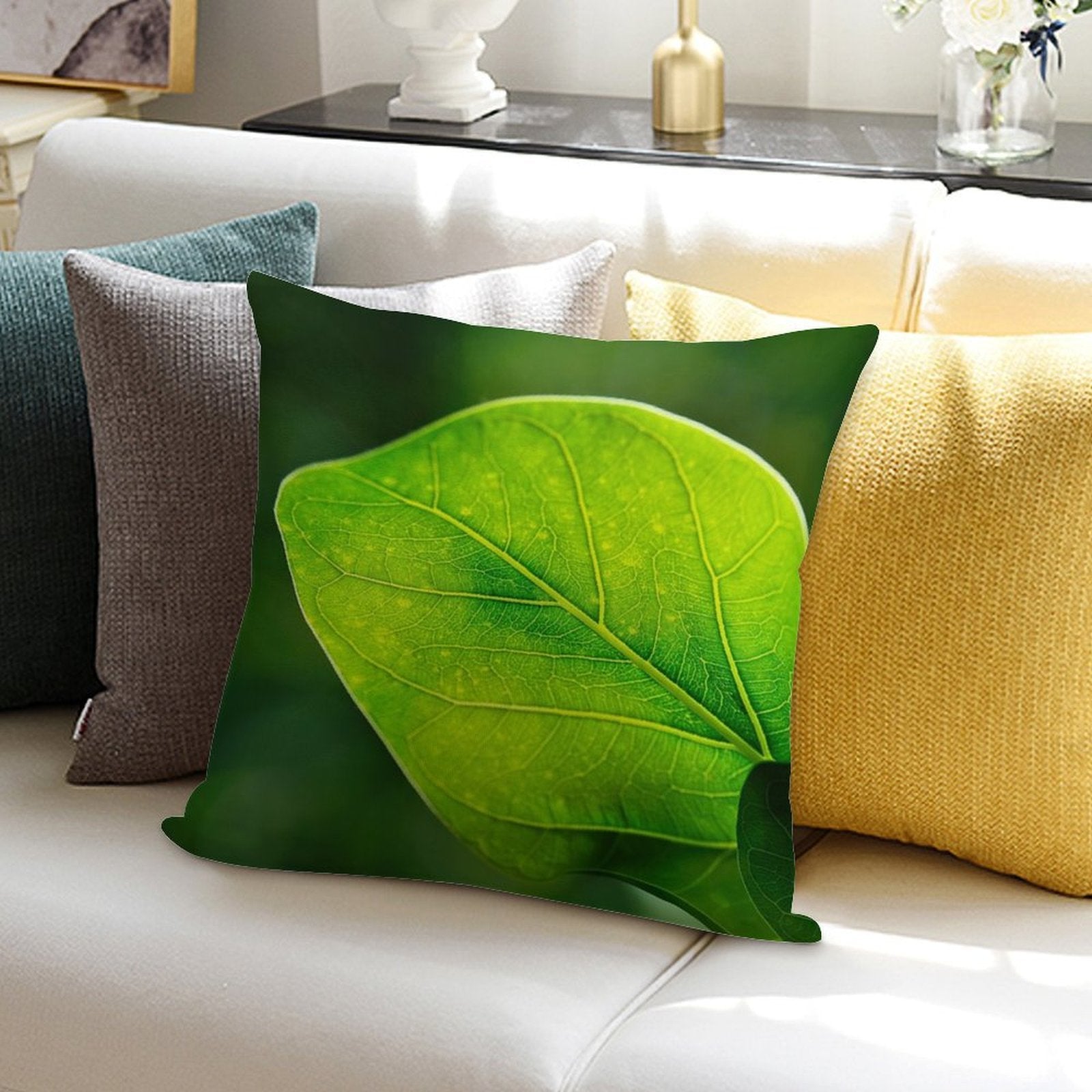 Green Leaf Macro with Vein Detail Soft Decorative Cover Throw Pillow