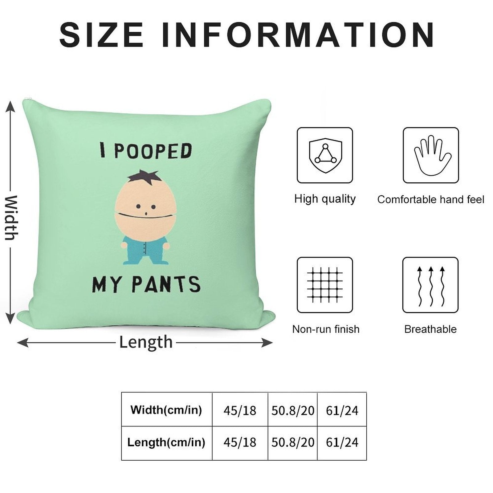 - Reinforced stitching along the edges prevents fraying and extends the life of your I Pooped My Pants Pillowcase.