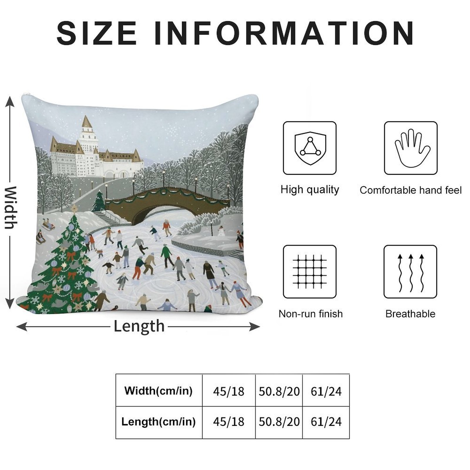 • Reinforced stitching along the edges prevents fraying and extends the life of your Ice Skating Pond Pillowcase.