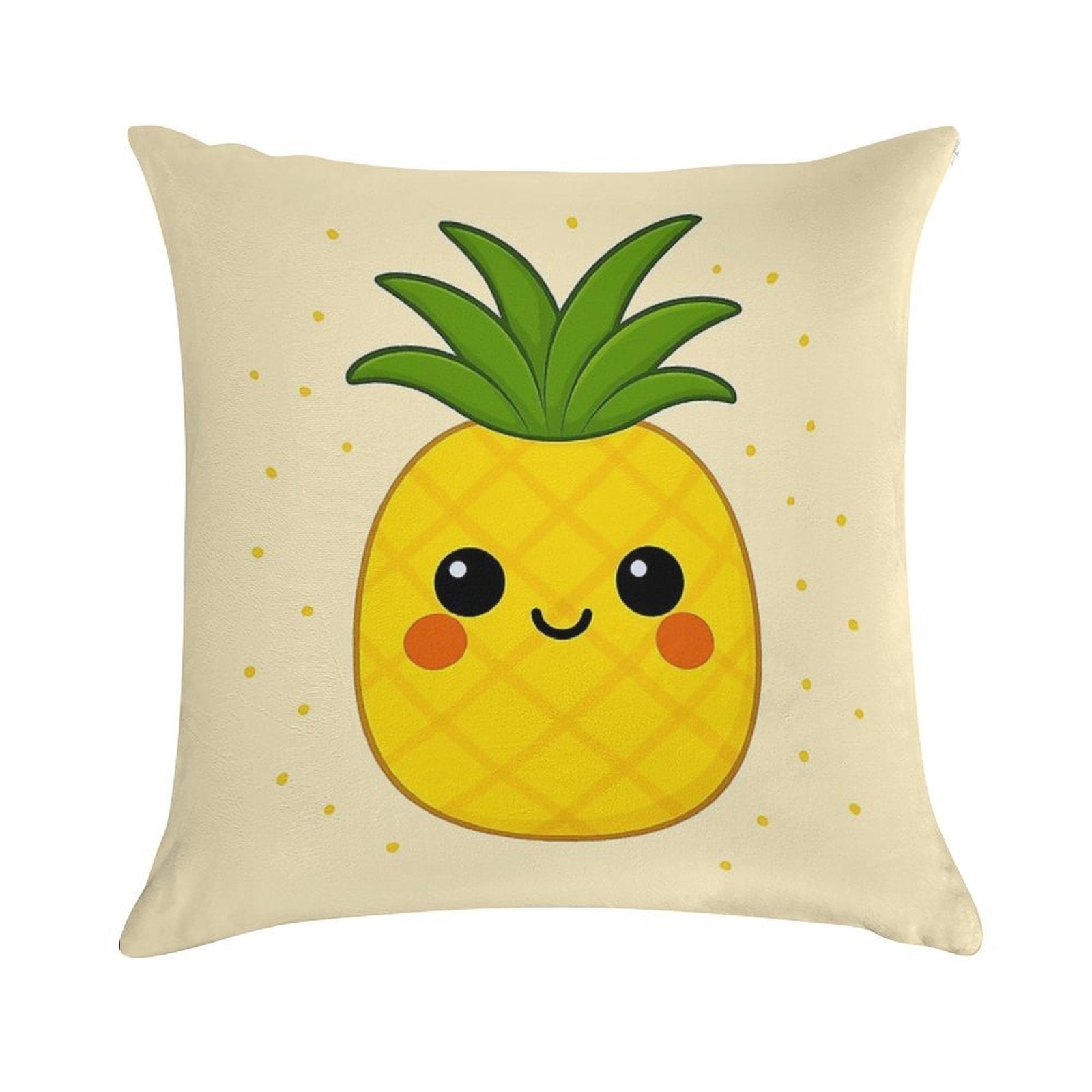 Kawaii-Style Pineapple - Light Beige Background Soft Fade-Resistant Throw Pillow