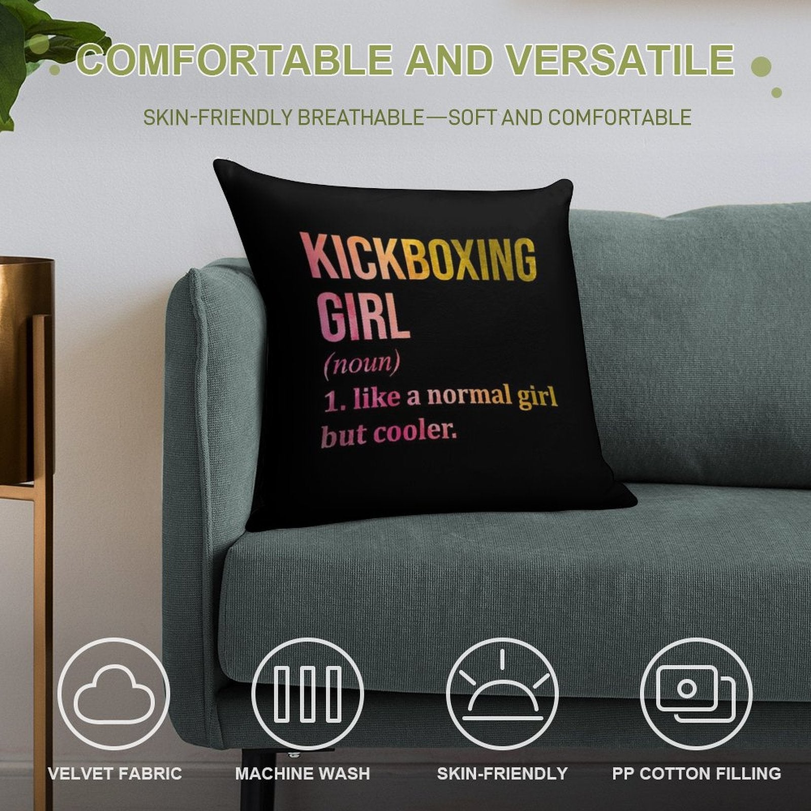 Kickboxing Girl Definition in Watercolor Soft Gift Ready Throw Pillow