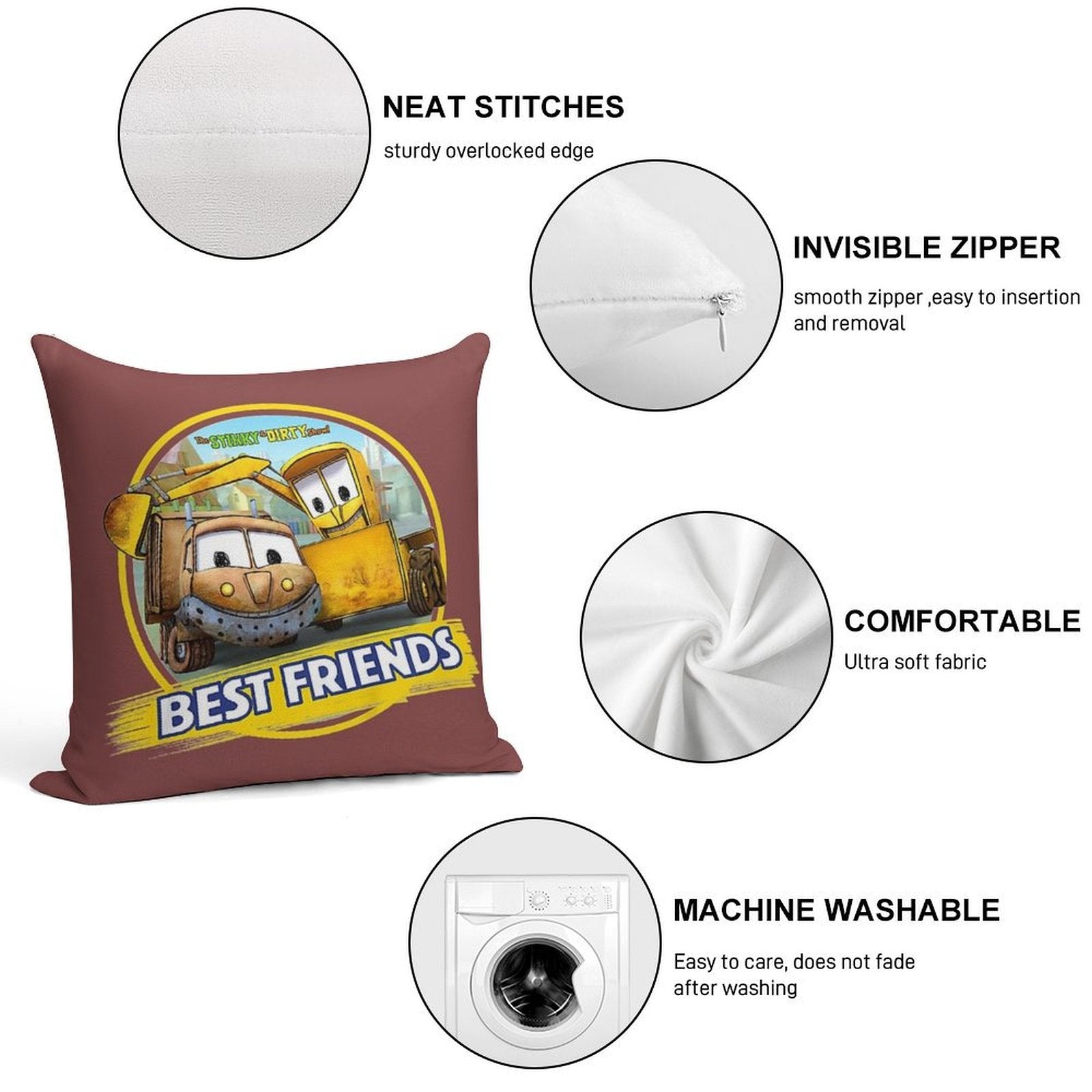 - Reinforced stitching along the edges prevents fraying and extends the life of your Kids The Stinky And Dirty Show - Best Friends Pillowcase.