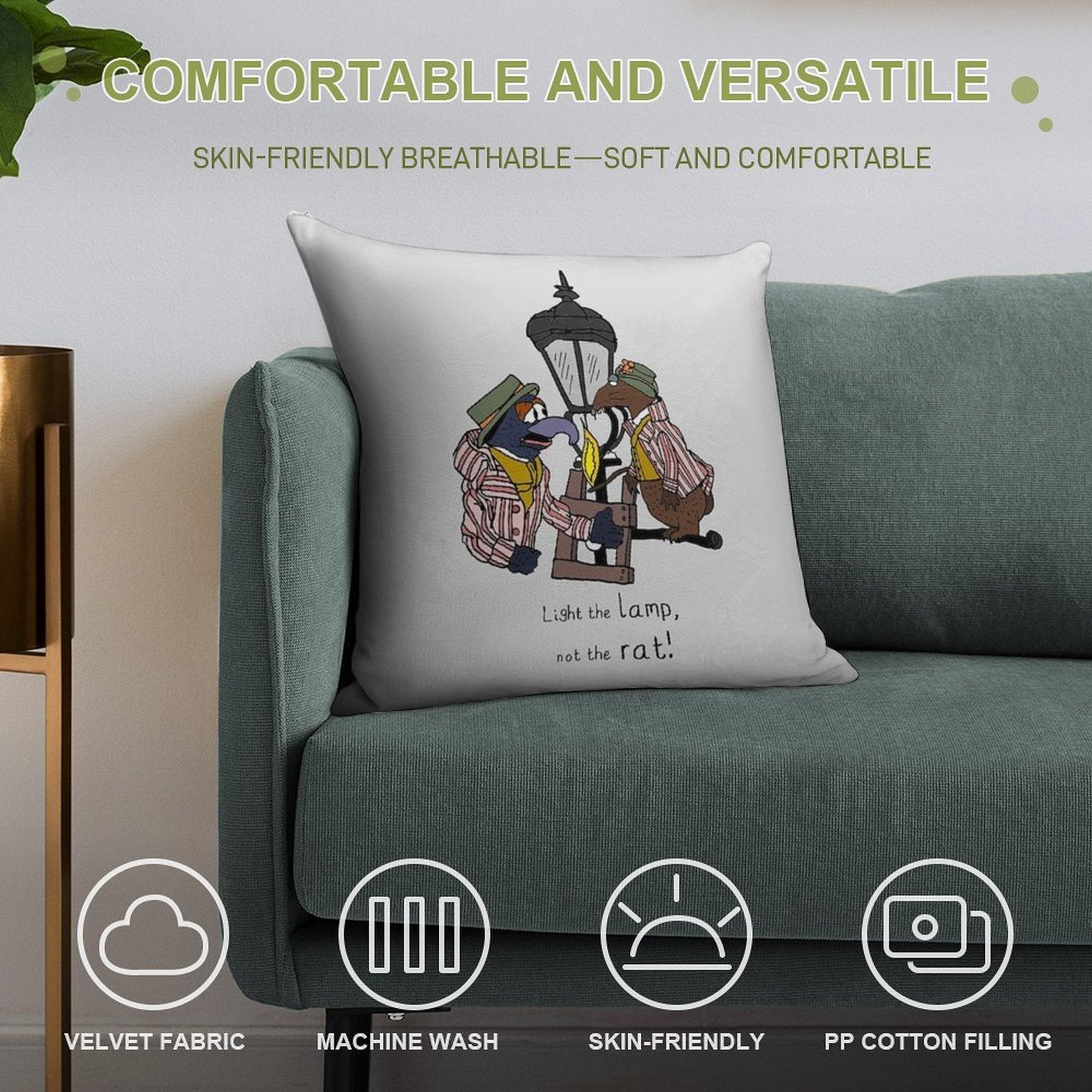 Light The Lamp, Not The Rat! (with Full Lamp Post) Soft Style Accent Throw Pillow
