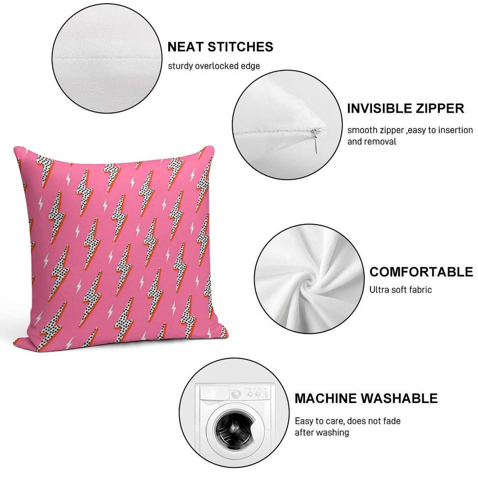 • Reinforced stitching along the edges prevents fraying and extends the life of your Lightning Bolt Thunder Flash Preppy Pink Pillowcase.