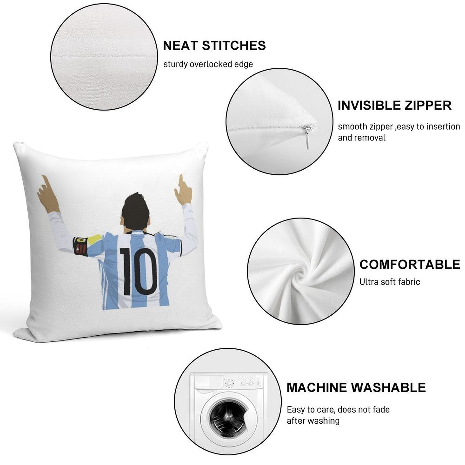 - Reinforced stitching along the edges prevents fraying and extends the life of your Lionel Messi Sticker Pillowcase.