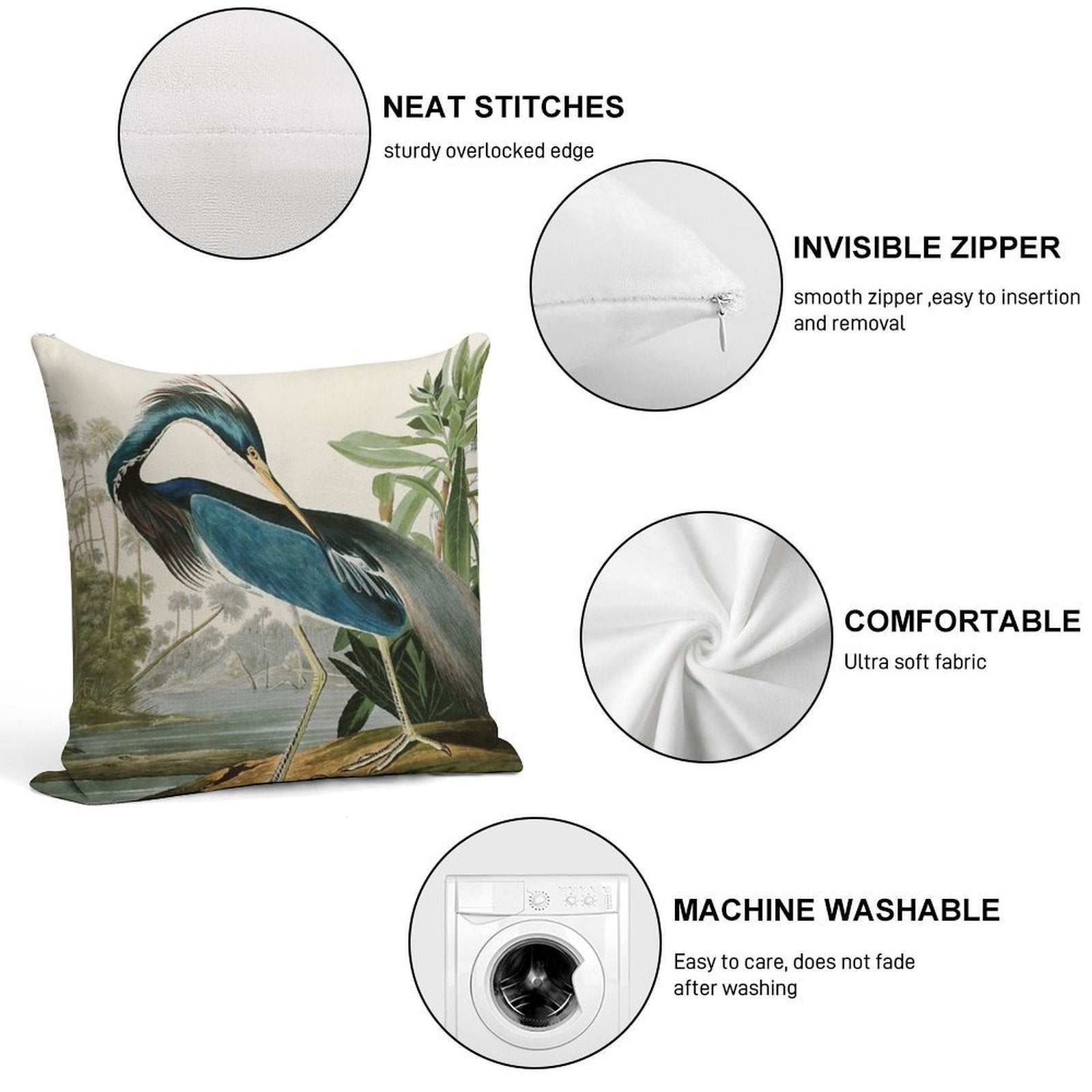 - Reinforced stitching along the edges prevents fraying and extends the life of your Louisiana Heron by John James Audubon Pillowcase.