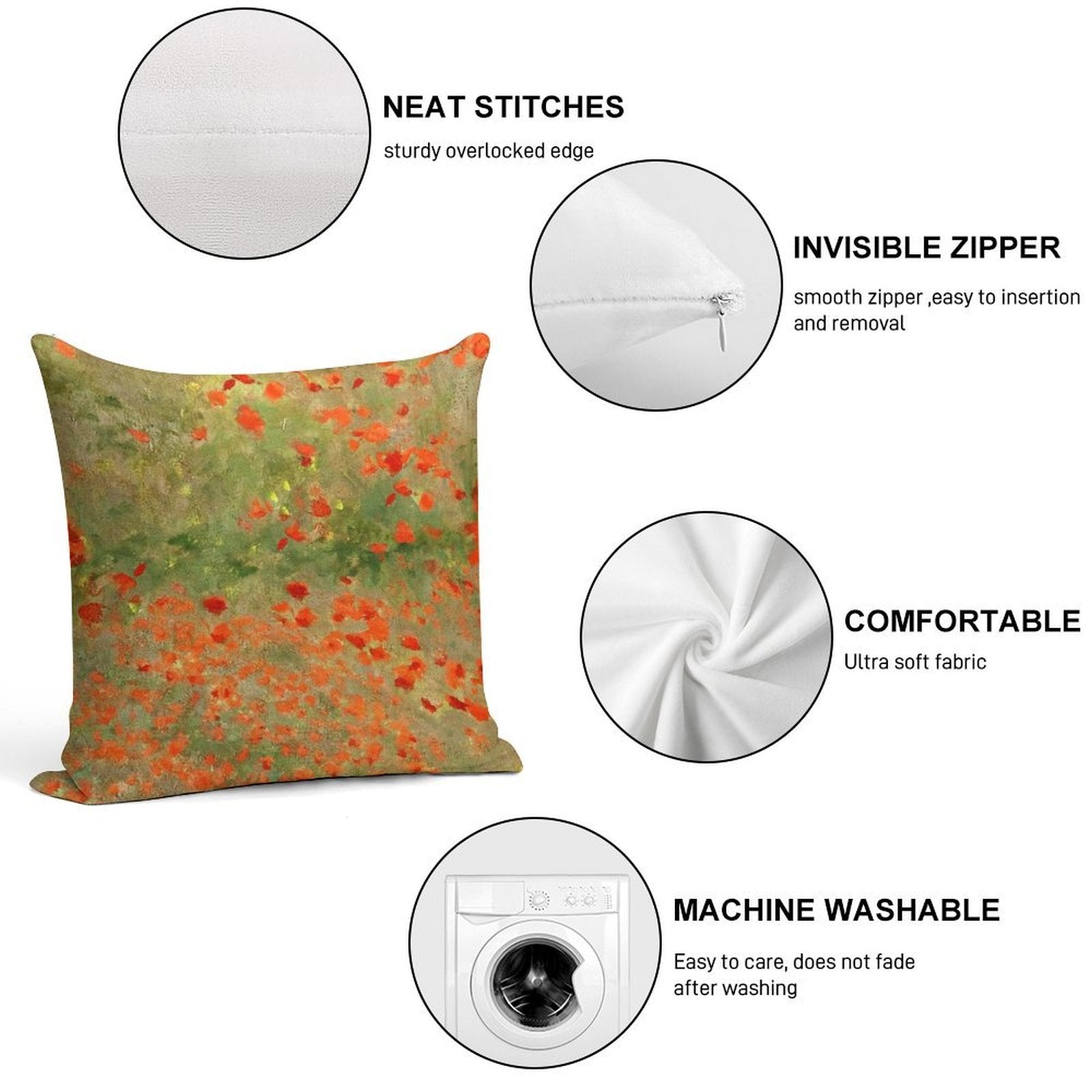 - Reinforced stitching along the edges prevents fraying and extends the life of your Monet Poppy Field Poppies Only Version Pillowcase.