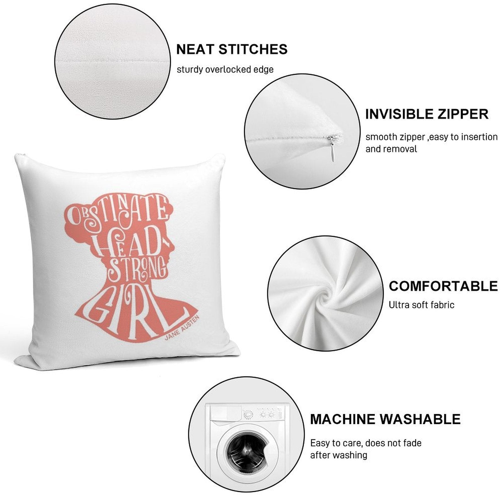 - Reinforced stitching along the edges prevents fraying and extends the life of your Obstinate, Headstrong Girl Pride And Prejudice Jane Austen Quote Design Pillowcase.