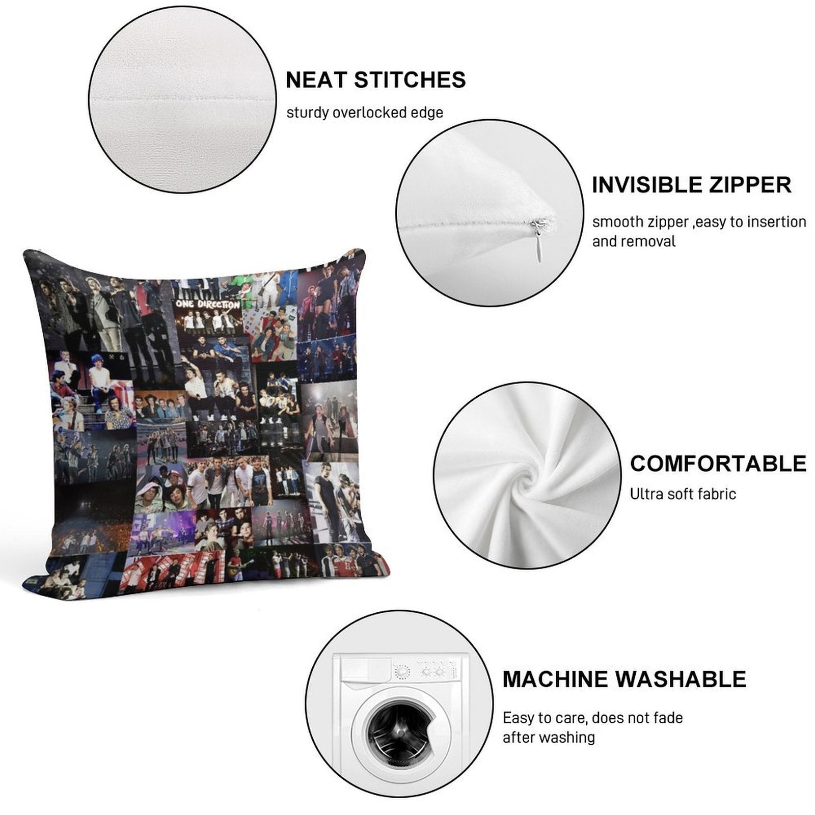 • Reinforced stitching along the edges prevents fraying and extends the life of your One Direction Pillowcase.