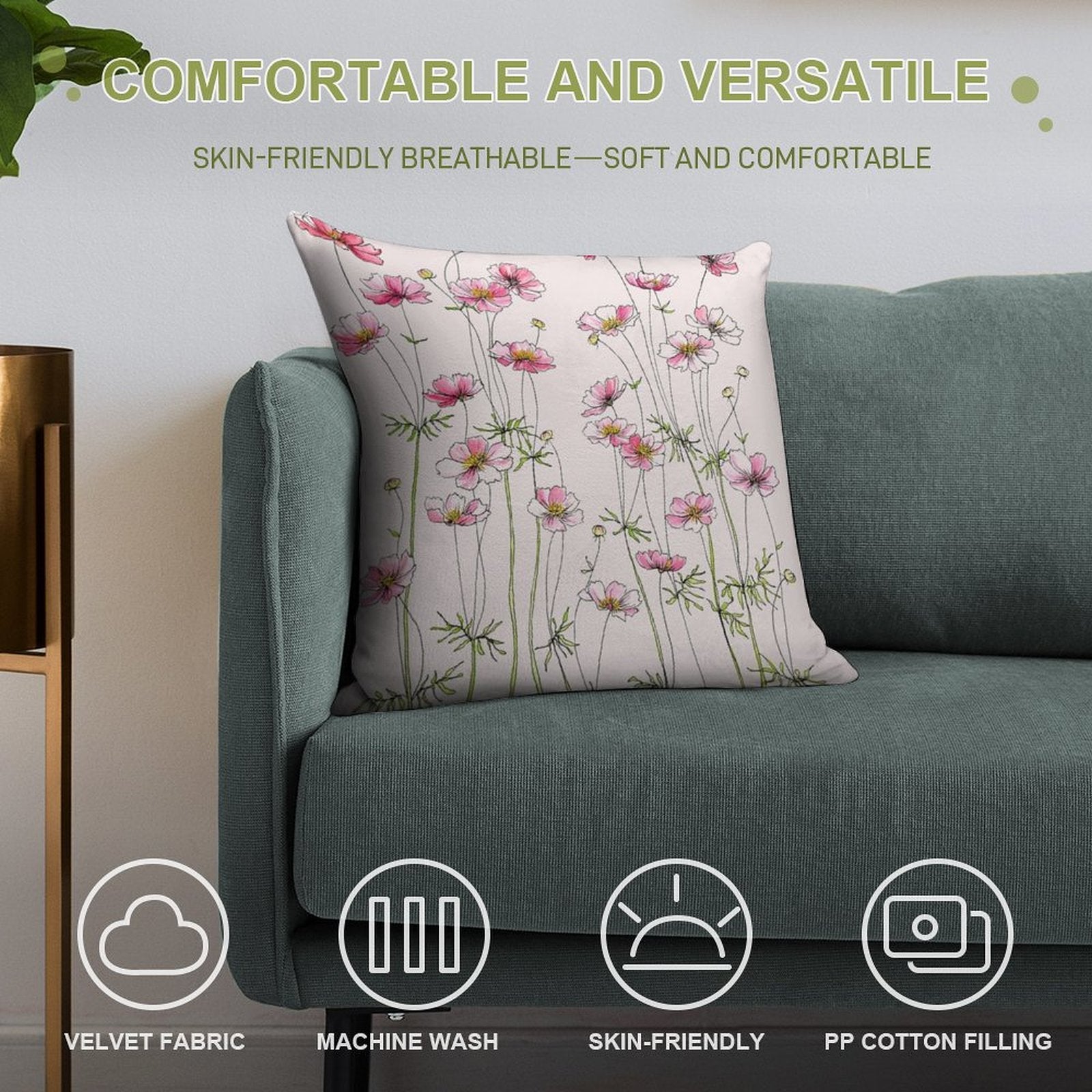 ✔️ Fits Any Style – Neutral tones and plush texture suit all Pink Cosmos Flowers decors.