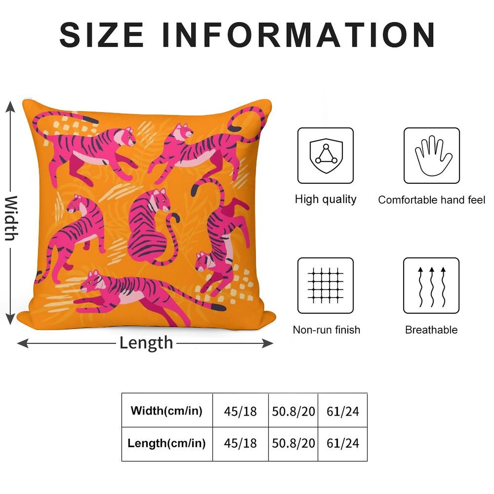 - Reinforced stitching along the edges prevents fraying and extends the life of your Pink Tigers on Orange Pillowcase.
