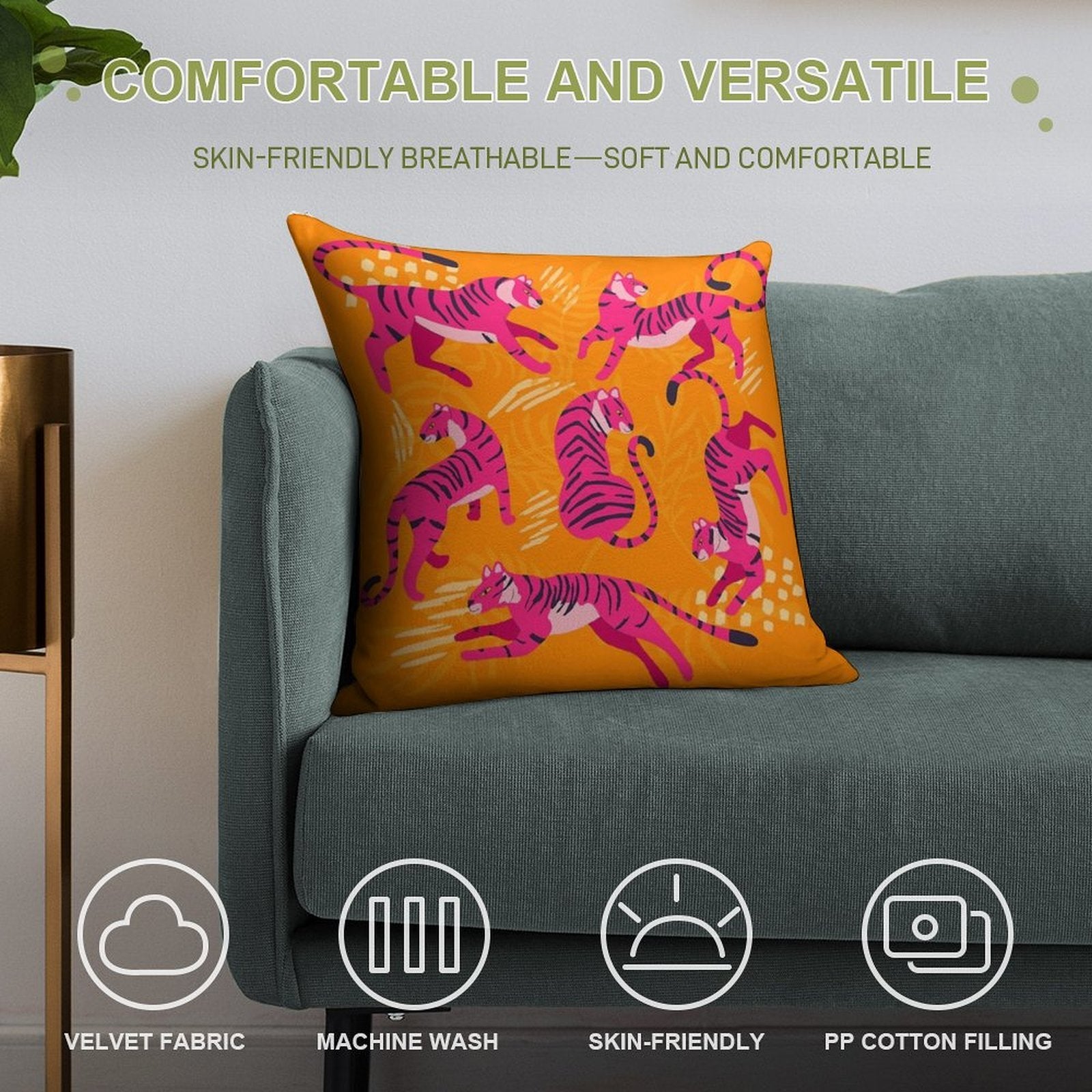 ✔️ Fits Any Style – Neutral tones and plush texture suit all Pink Tigers on Orange decors.