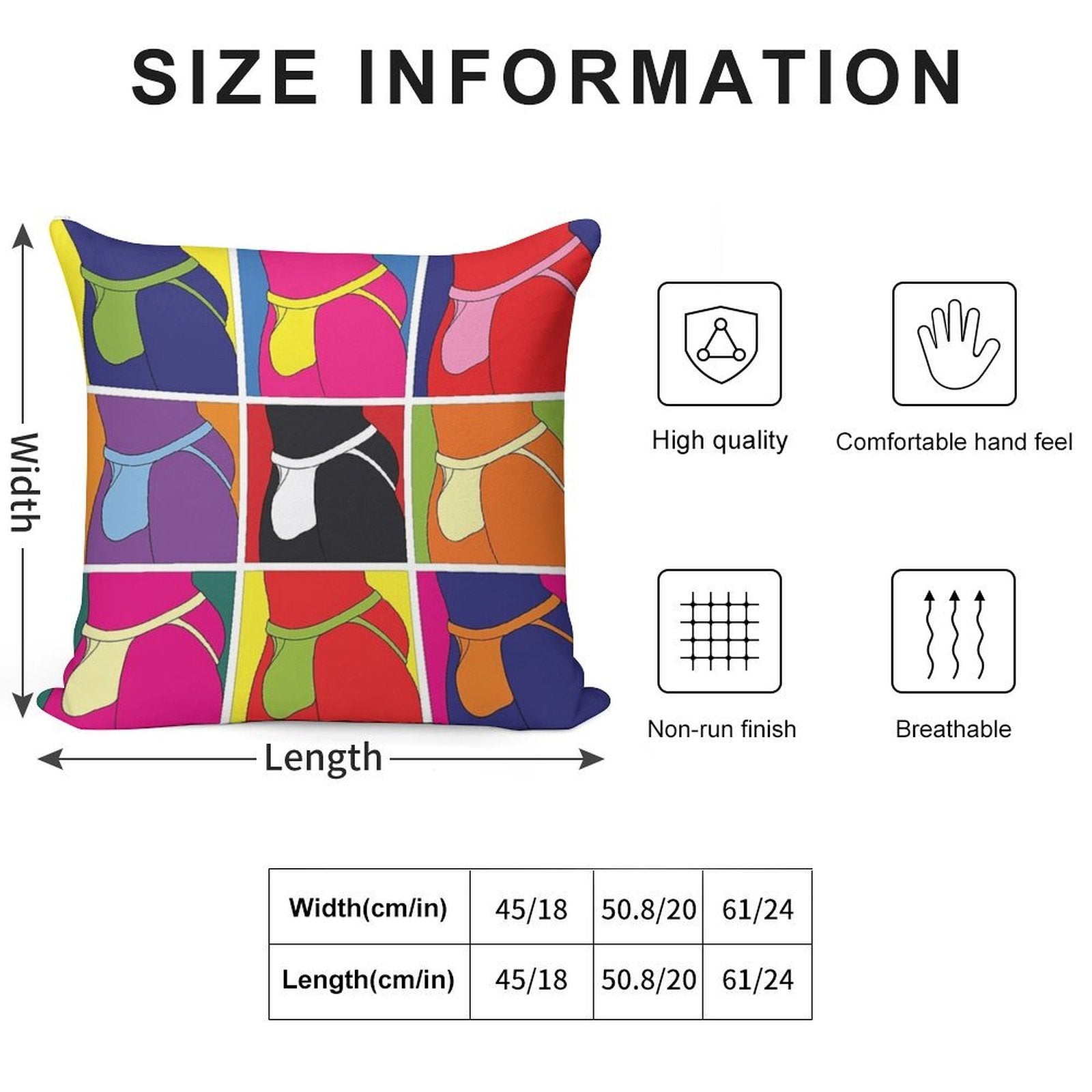 - Reinforced stitching along the edges prevents fraying and extends the life of your Pop Art Jockstrap Fantasy Nine Pillowcase.
